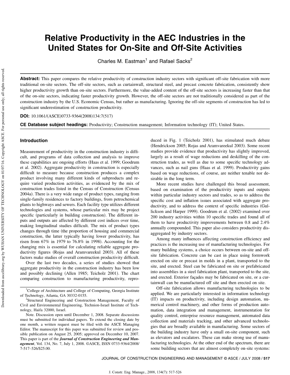 518 / 建筑工程与管理杂志 copy; ASCE / JULY 2008