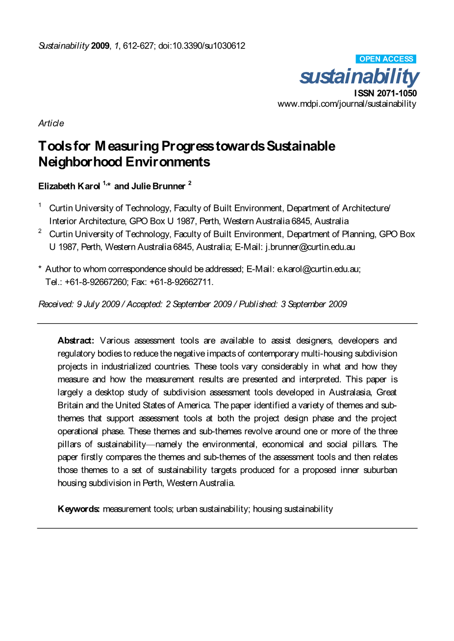关键词:测量工具;城市可持续发展;住宅可持续性