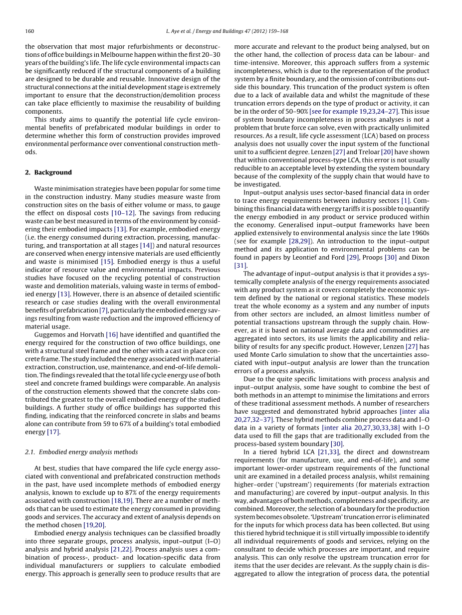 最好的是,比较过去与常规和预制施工方法相关的生命周期能量的研究使用不完全的体现能量分析方法,已知排除高达建筑相关能源需求的87%[18,19]。 有许多方法可用于估计提供商品和服务的能源消耗。分析的准确性和程度取决于所选择的方法[19,20]。
