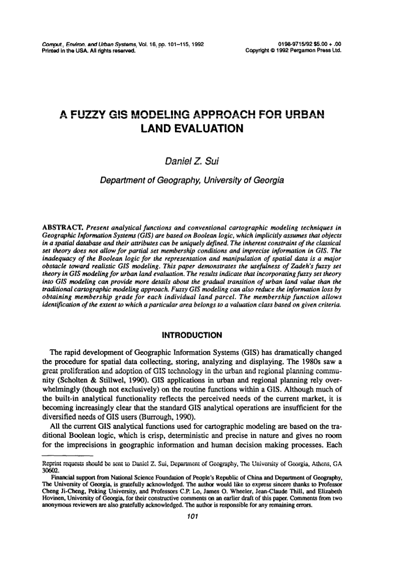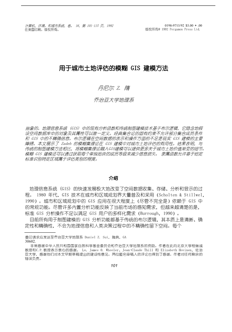 用于城市土地评估的模糊GIS建模方法外文翻译资料