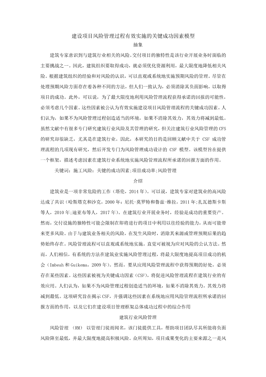 建设项目风险管理过程有效实施的关键成功因素模型外文翻译资料 2023-08-16 08:53:22 英语原文共 21 页,剩余内容已隐藏,支付完成后下载完整资料 英语译文共 19 页,剩余内容已隐藏,支付完成后下载完整资料 资料编号:[606305],资料为PDF文档或Word文档,PDF文档可免费转换为Word 原文和译文剩余内容已隐藏,您需要先支付 30元 才能查看原文和译文全部内容!立即支付 发小红书推广免费获取该资料资格。点击链接进入获取推广文案即可: Ai一键组稿 | 降AI率 | 降重复率 | 论文一键排版 PREVIOUS NEXT 您可能感兴趣的文章 质量和成本控制:医疗保险及其他外文翻译资料 估算废物处理厂建设成本的技术外文翻译资料 新建项目建筑废物上游估算方法外文翻译资料 基于安全防范的旧住宅小区电梯安装升级意愿路径研究外文翻译资料 埃塞俄比亚项目的规划和融资外文翻译资料 物业管理外文翻译资料 工程造价管理的阶段外文翻译资料 建设项目风险管理过程有效实施的关键成功因素模型外文翻译资料 项目管理成本、时间和质量,两个最佳猜测和一个现象,是接受其他成功标准的时间了外文翻译资料 项目成本控制:它的工作方式外文翻译资料