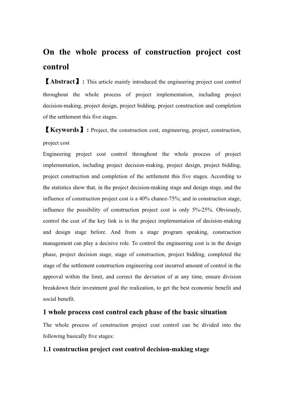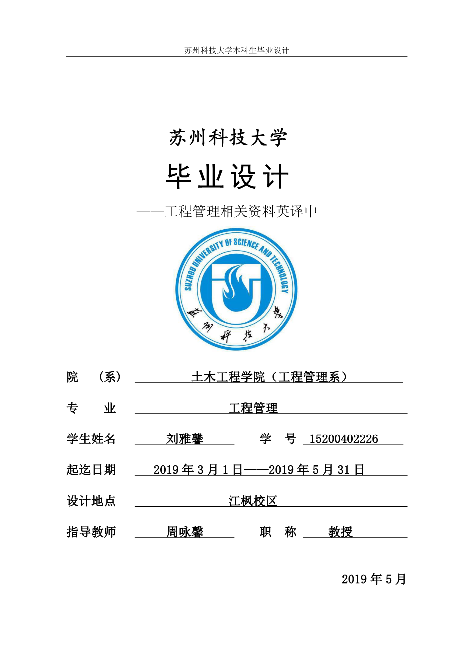 某小区3号楼土建工程量清单编制及施工组织设计外文翻译资料 2022-02-20 20:59:06 英语原文共 22 页,剩余内容已隐藏,支付完成后下载完整资料 英语译文共 24 页,剩余内容已隐藏,支付完成后下载完整资料资料编号:[448104],资料为PDF文档或Word文档,PDF文档可免费转换为Word 原文和译文剩余内容已隐藏,您需要先支付 30元 才能查看原文和译文全部内容!立即支付 发小红书推广免费获取该资料资格。点击链接进入获取推广文案即可: Ai一键组稿 | 降AI率 | 降重复率 | 论文一键排版 PREVIOUS NEXT 您可能感兴趣的文章 质量和成本控制:医疗保险及其他外文翻译资料 估算废物处理厂建设成本的技术外文翻译资料 新建项目建筑废物上游估算方法外文翻译资料 基于安全防范的旧住宅小区电梯安装升级意愿路径研究外文翻译资料 埃塞俄比亚项目的规划和融资外文翻译资料 物业管理外文翻译资料 工程造价管理的阶段外文翻译资料 建设项目风险管理过程有效实施的关键成功因素模型外文翻译资料 项目管理成本、时间和质量,两个最佳猜测和一个现象,是接受其他成功标准的时间了外文翻译资料 项目成本控制:它的工作方式外文翻译资料