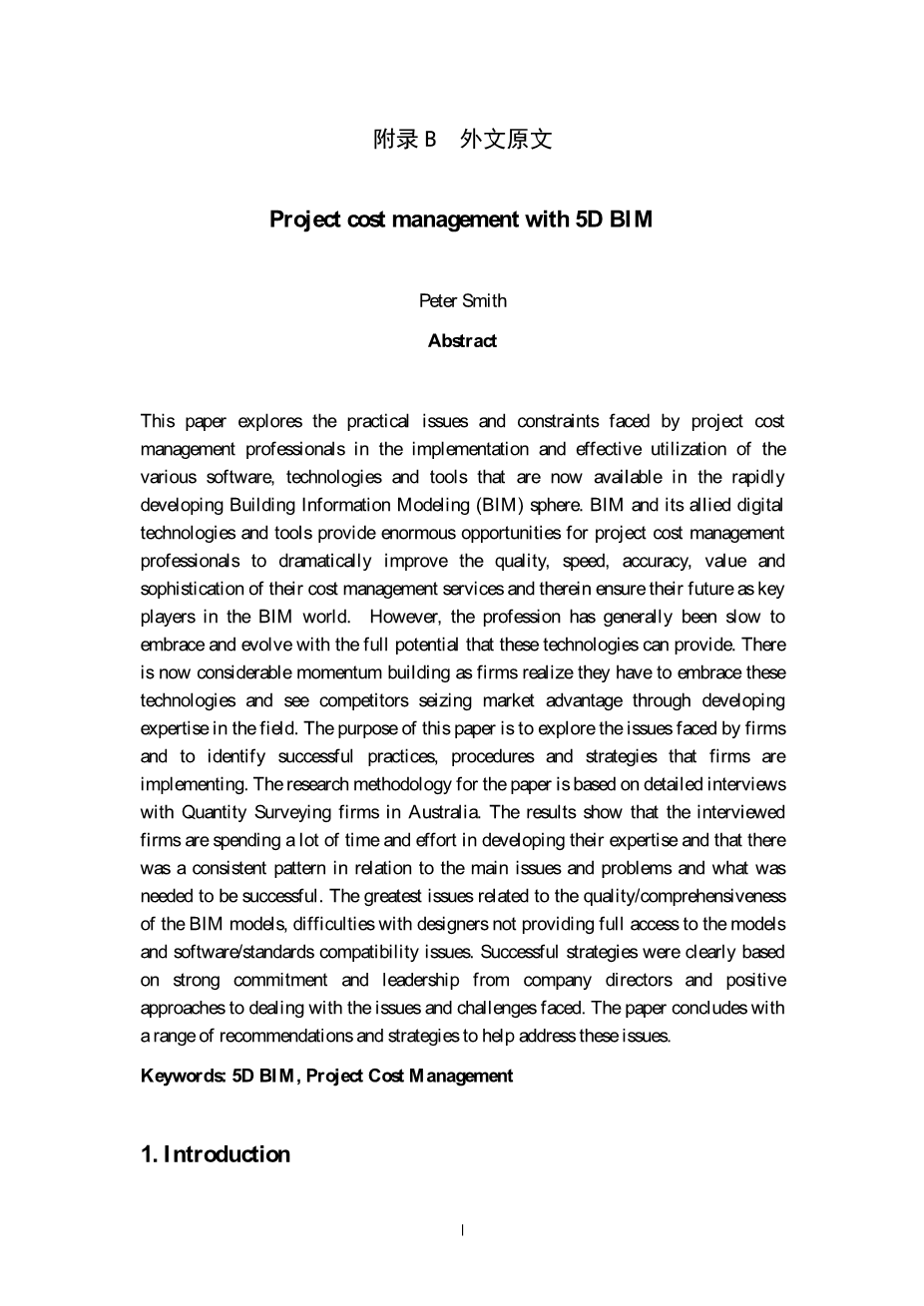 基于BIM技术的苏州某住宅楼项目施工进度模拟及分析外文翻译资料 2022-03-06 22:09:40 英语原文共 10 页,剩余内容已隐藏,支付完成后下载完整资料 英语译文共 12 页,剩余内容已隐藏,支付完成后下载完整资料资料编号:[424724],资料为PDF文档或Word文档,PDF文档可免费转换为Word 原文和译文剩余内容已隐藏,您需要先支付 30元 才能查看原文和译文全部内容!立即支付 发小红书推广免费获取该资料资格。点击链接进入获取推广文案即可: Ai一键组稿 | 降AI率 | 降重复率 | 论文一键排版 PREVIOUS NEXT 您可能感兴趣的文章 质量和成本控制:医疗保险及其他外文翻译资料 估算废物处理厂建设成本的技术外文翻译资料 新建项目建筑废物上游估算方法外文翻译资料 基于安全防范的旧住宅小区电梯安装升级意愿路径研究外文翻译资料 埃塞俄比亚项目的规划和融资外文翻译资料 物业管理外文翻译资料 工程造价管理的阶段外文翻译资料 建设项目风险管理过程有效实施的关键成功因素模型外文翻译资料 项目管理成本、时间和质量,两个最佳猜测和一个现象,是接受其他成功标准的时间了外文翻译资料 项目成本控制:它的工作方式外文翻译资料