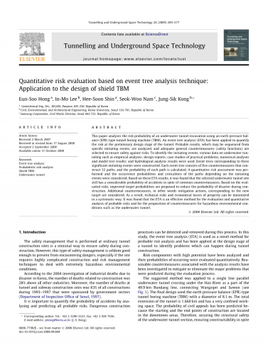 直到现在,建筑风险分析的研究还非常有限(Blockley, 1980;Hadipriono等,1986;Al-Bahar, 1988;贝姆和霍布斯,1997;Fujino, 1994;Salmon等,1997;惠特曼,2000;Frangopol等,1997)。此外,只有少数研究人员(Abdel Salaml, 1995;爱因斯坦,1996;Sturk等,1996;安德森,1998;Guglielemetti等人,2007)对隧道施工进行了风险分析。最近Sturk等(1996)和ITA (Eskesen et al., 2004)提出ETA技术是定量风险管理技术之一,但本研究中ETA技术在盾构TBM水下隧道风险管理中的实际应用并不多见。