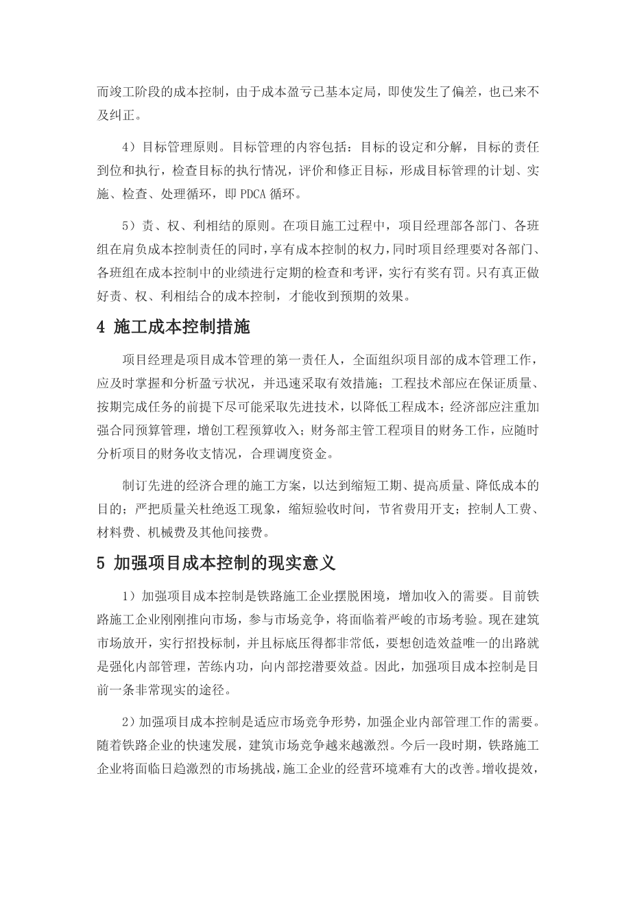 1)Strengthen project cost control railway construction enterprises out of their predicament, the need to increase revenue. At present, the railway construction enterprises just into the market, to participate in market competition, will face a tough test of the market. Now the construction market liberalization, implement bidding system, and the strike has very low weight, To create efficiency is the only way to strengthen inter