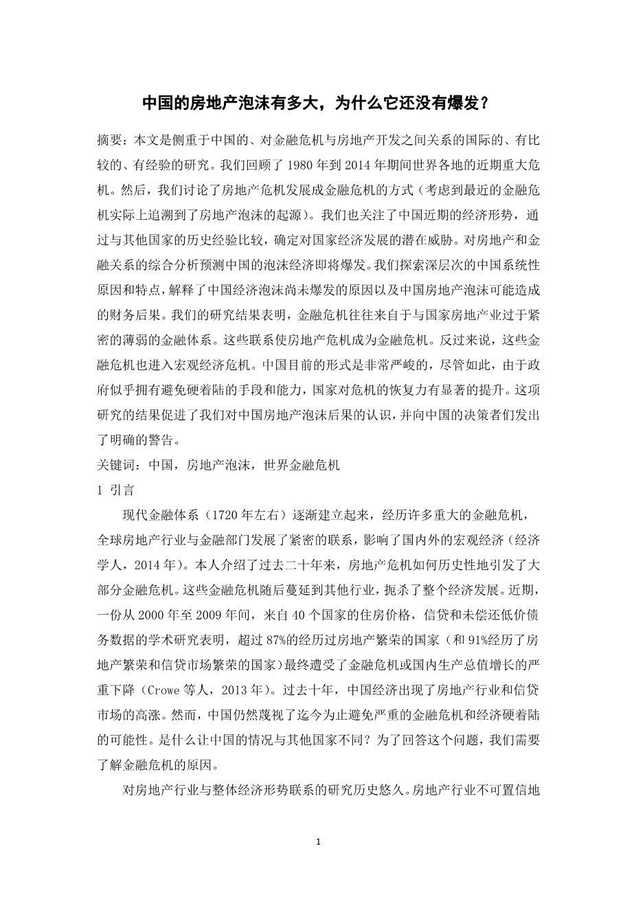 ABSTRACT:This paper represents an international, comparative, empirical study of the relationship between financial crises and real estate development, with a focus on China. We review recent major crises around the world from 1980 to 2014.We then discuss the ways real estate crises develop into financial crises (considering that most recent financial crises actually trace their origins to real estate bubbles). We also look at China’s current economic situation, and identify potential threats to the country’s economic development by comparing it with other countries’ historical experiences. A comprehensive analysis of the relationship between real estate and finance predicts an upcoming burst in China’s bubble economy. We explore the deep-seated underlying Chinese systemic causes and characteristics that explain why China’s economic bubble has yet to burst and the possible financial consequences of the real estate bubble in China.Our findings suggest that a financial crisis often emerges from a weak financial system which is too closely linked to the country’s real estate sector. These linkages allow real estate crises to mushroom into financial crises. In turn, these financial crises balloon into macroeconomic crises. China’s current situation is extremely alarming, though the country shows remarkable resilience to crisis as the government seems to possess the tools and capacity to avoid a hard landing. The findings of this research advance our understanding of the consequences of China’s real estate bubble and sound a clear warning to China’s policymakers.