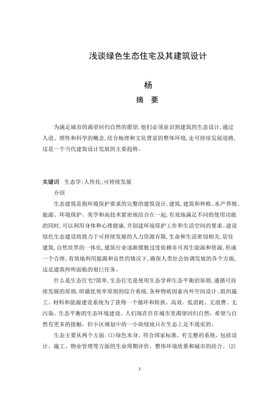 Discussion on green ecological residence and its architectural design