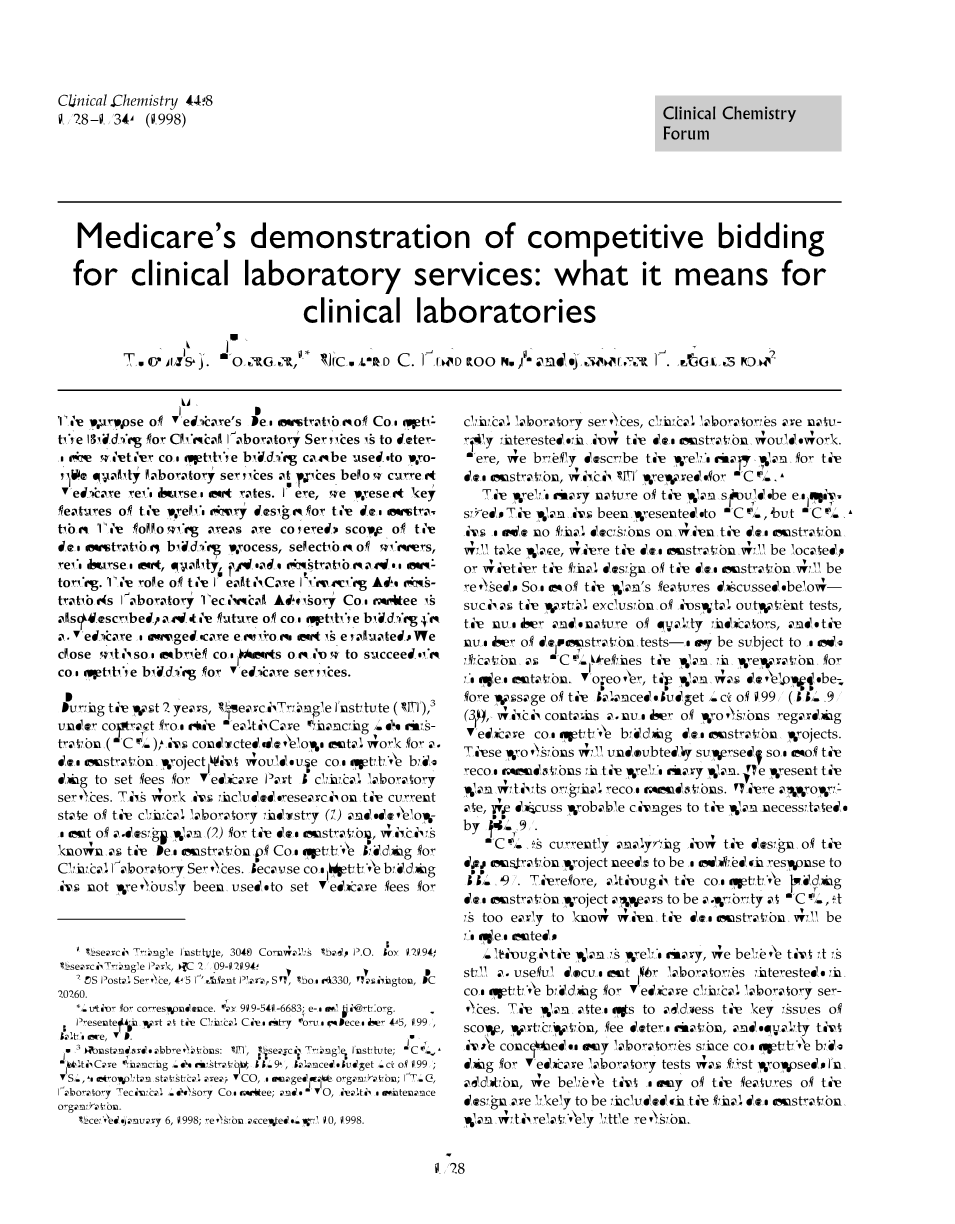 医疗保险在临床实验室服务竞标中的示范:对临床实验室意味着什么