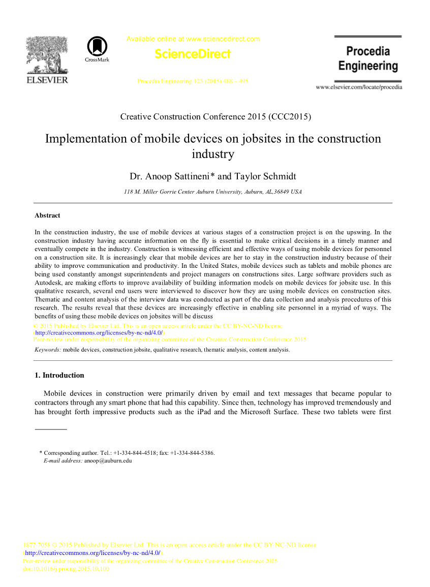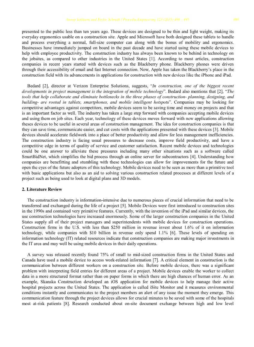 Anoop Sattineni and Taylor Schmidt / Procedia Engineering 123 (2015) 488 – 495