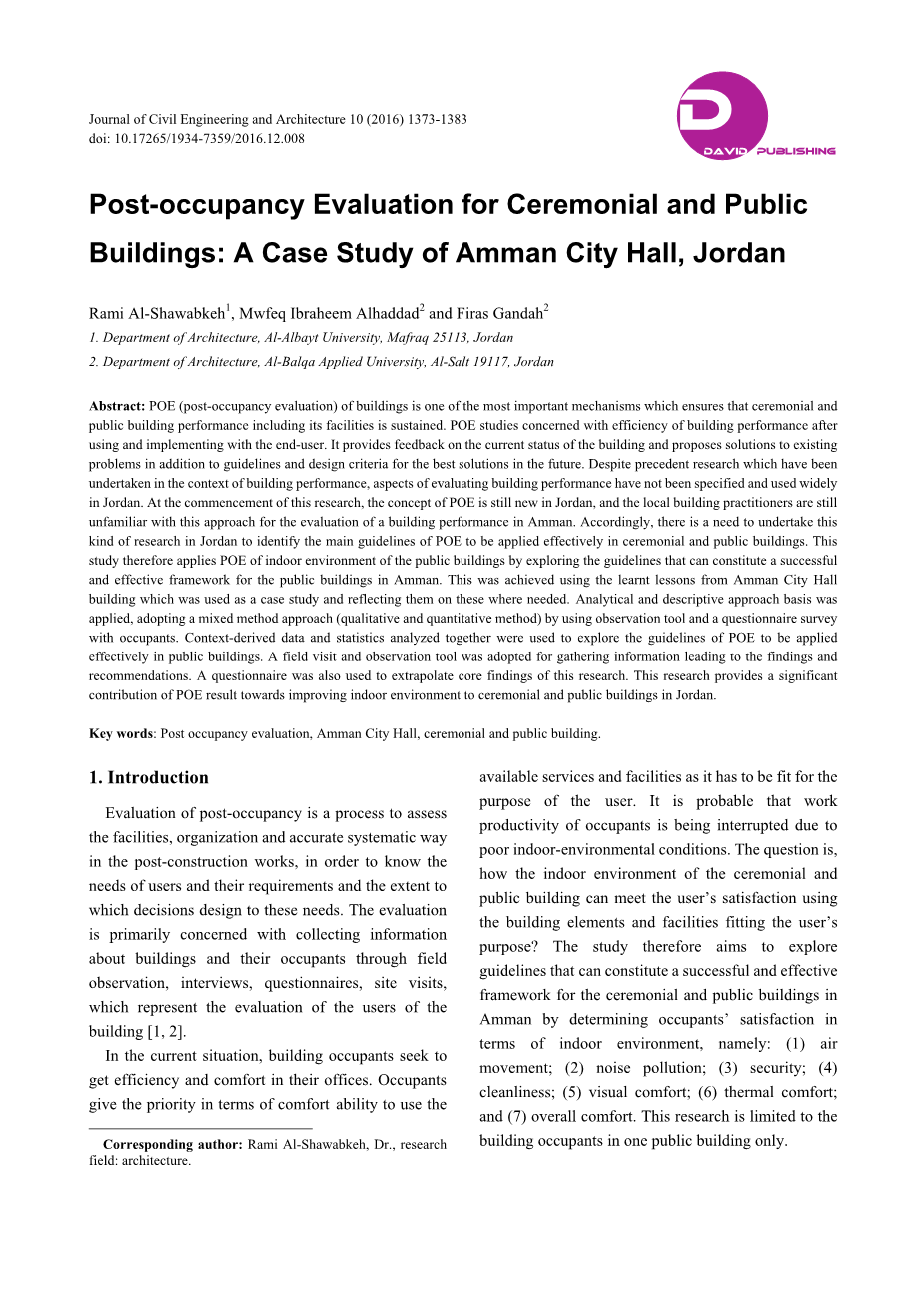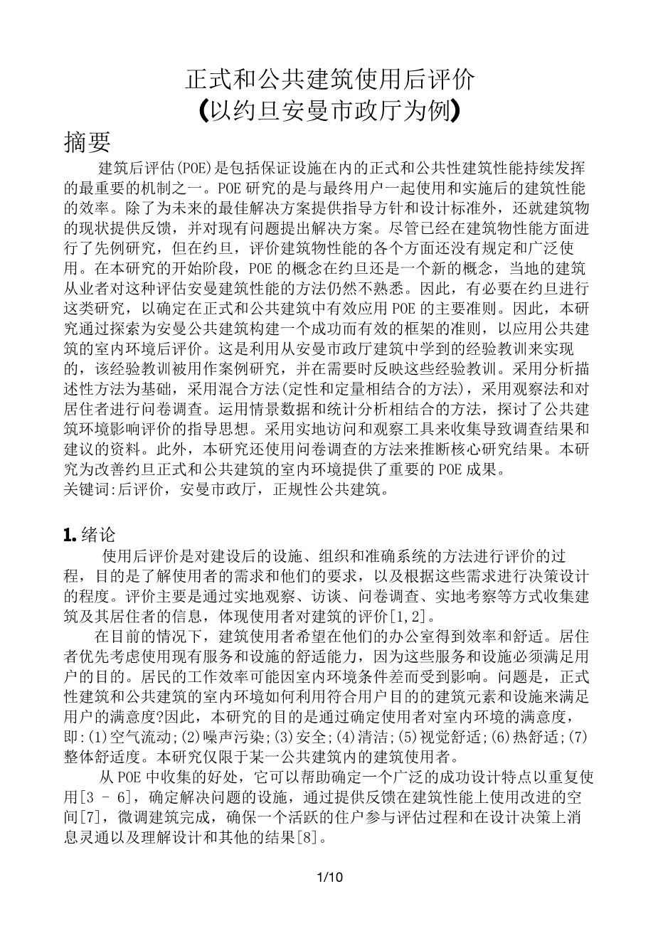 正式和公共建筑使用后评价(以约旦安曼市政厅为例)外文翻译资料 2021-10-26 00:13:30 英语原文共 11 页 英语原文共 10 页 原文和译文剩余内容已隐藏,您需要先支付 30元 才能查看原文和译文全部内容!立即支付 发小红书推广免费获取该资料资格。点击链接进入获取推广文案即可: Ai一键组稿 | 降AI率 | 降重复率 | 论文一键排版 PREVIOUS NEXT 您可能感兴趣的文章 质量和成本控制:医疗保险及其他外文翻译资料 估算废物处理厂建设成本的技术外文翻译资料 新建项目建筑废物上游估算方法外文翻译资料 基于安全防范的旧住宅小区电梯安装升级意愿路径研究外文翻译资料 埃塞俄比亚项目的规划和融资外文翻译资料 物业管理外文翻译资料 工程造价管理的阶段外文翻译资料 建设项目风险管理过程有效实施的关键成功因素模型外文翻译资料 项目管理成本、时间和质量,两个最佳猜测和一个现象,是接受其他成功标准的时间了外文翻译资料 项目成本控制:它的工作方式外文翻译资料