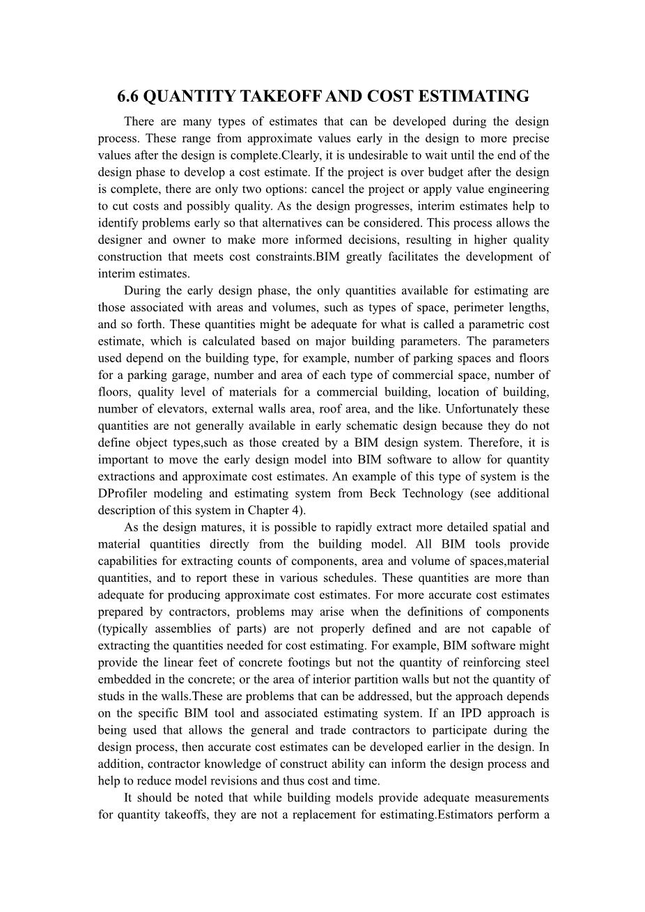6.6 QUANTITY TAKEOFF AND COST ESTIMATING