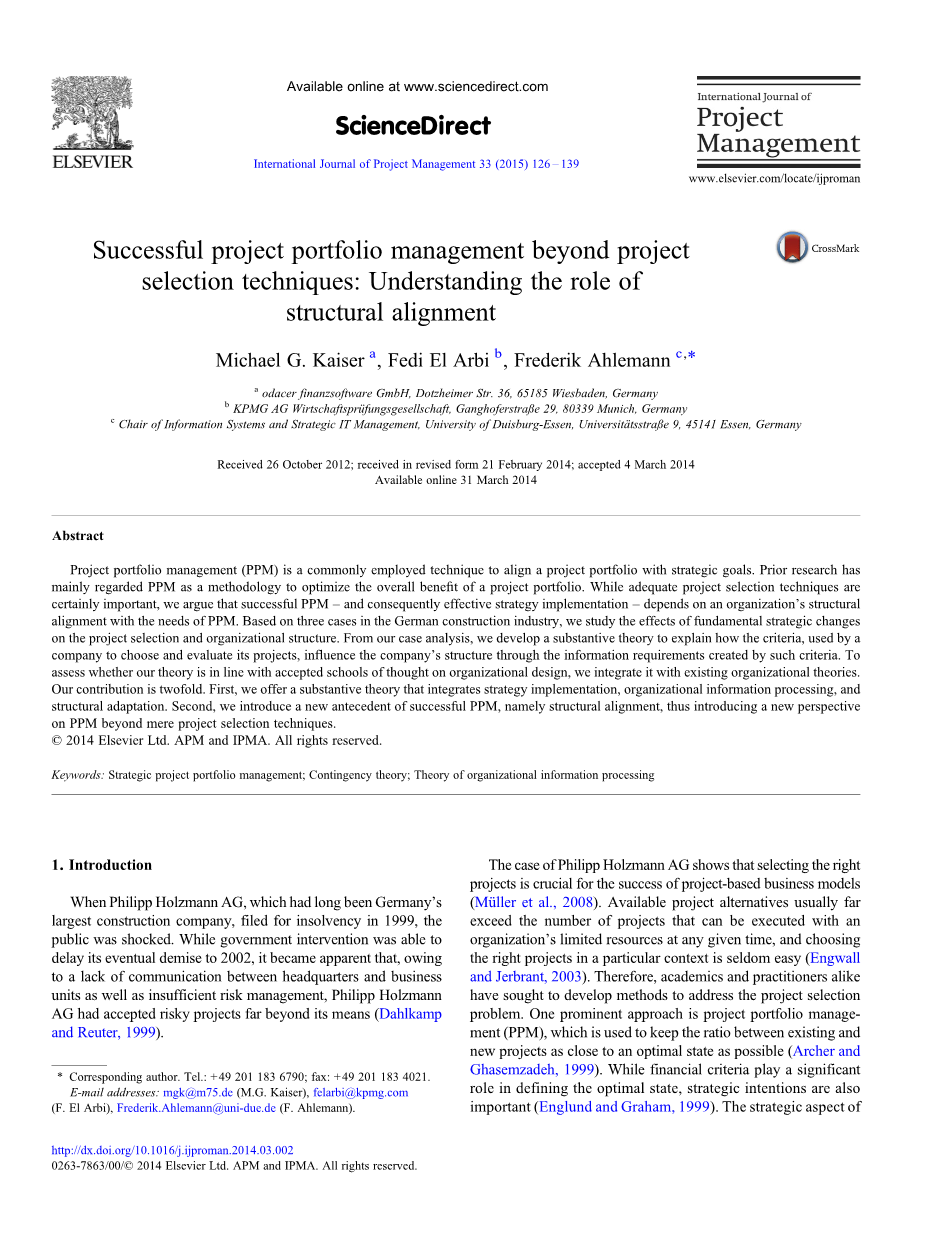 项目组合管理(PPM)是将项目组合与战略目标协调一致的常用技术。之前的研究主要把项目组合管理看作一种方法来优化项目组合的总体利益。虽然充分的项目选择技术确实很重要,但我们认为,成功的项目组合管理-因而有效的战略实施-取决于组织与项目组合管理需求的结构一致。根据德国建筑业的三个案例,我们研究了基本战略变化对项目选择和组织结构的影响。根据我们的案例分析,我们制定了一个实质性理论来解释公司如何选择和评估其项目的标准,通过这些标准创建的信息要求来影响公司的结构。为了评估我们的理论是否符合公认的组织设计思想,我们将其与现有的组织理论相结合。我们的贡献是双重的。首先,我们提供了一个集战略实施、组织信息处理和结构适应于一体的实质性理论。其次,我们引入了一个成功项目组合管理的新先行者,即结构性对​​齐,从而为项目组合管理引入了一个新的视角,超越单纯的项目选择技术。