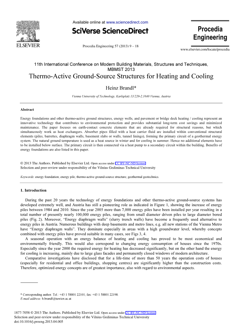 冷热源基础和其他热活动地面结构,冷热源威尔斯,路面或桥面加热/冷却代表一种创新的技术,有助于环境保护,并提供可观的长期成本节约和最小化维护。本文重点讨论土接触混凝土构件,这些构件由于结构原因已经需要,但同时作为换热器工作。填充有热载体流体的吸收器管安装在传统的结构元件(桩、压捆机、地下连续墙、地下室板或墙、隧道衬里)中,形成地热能系统的初级电路。自然地面温度在冬季用作热源,夏季用于冷却。因此,在表面以下不需要安装额外的元件。主电路然后通过热泵连接到建筑物内的次级电路。本文还列举了冷热源基础的优点。