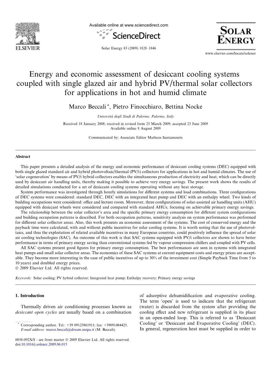 太阳能冷却研究的另一个悬而未决的问题是,使用太阳能光伏发电来驱动传统的蒸汽压缩式制冷机是否比利用太阳能热系统来驱动热驱动冷却过程和机器更有效。本文的目的是相对于传统的部分或完全由PV驱动的过程,提供DEC开式冷却循环的更多的信息。这是因为光伏系统存在公共激励制度的影响,如果考虑到经济因素,结果可能会改变。由于盈利能力和相对较短的回报时间,结果可能会非常有趣。与传统的空调系统相比,吸收设备仍然非常昂贵,而且在标准应用中没有竞争力。