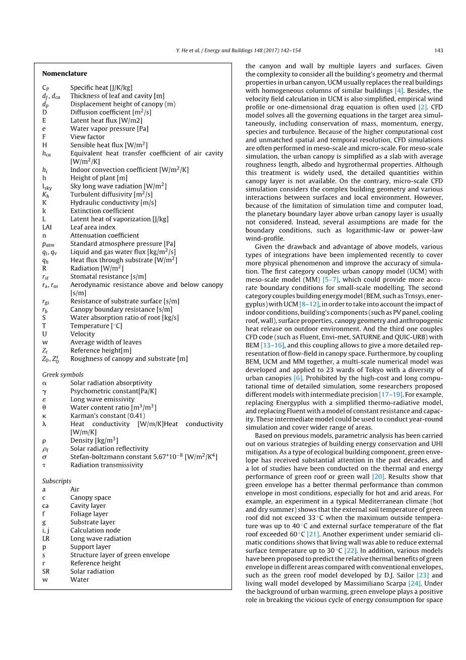 关键词:绿色围护结构 湿热传递模型 城市冠层