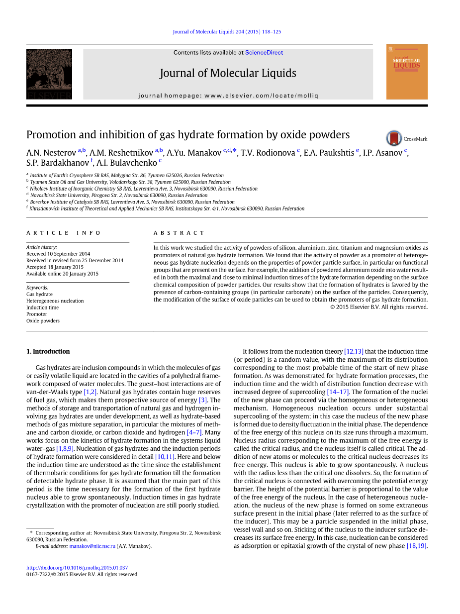 A.N.Nesterova,b, A.M.Reshetnikova,b, A.Yu.Manakovc,d,*, T.V. Rodionovac,