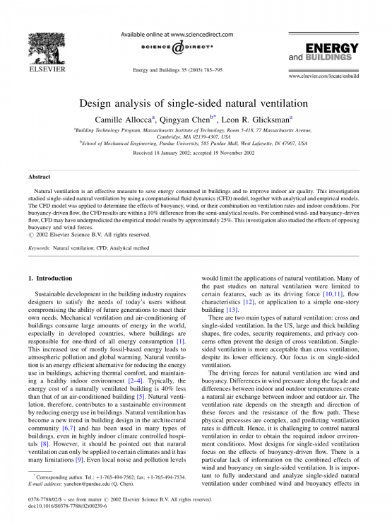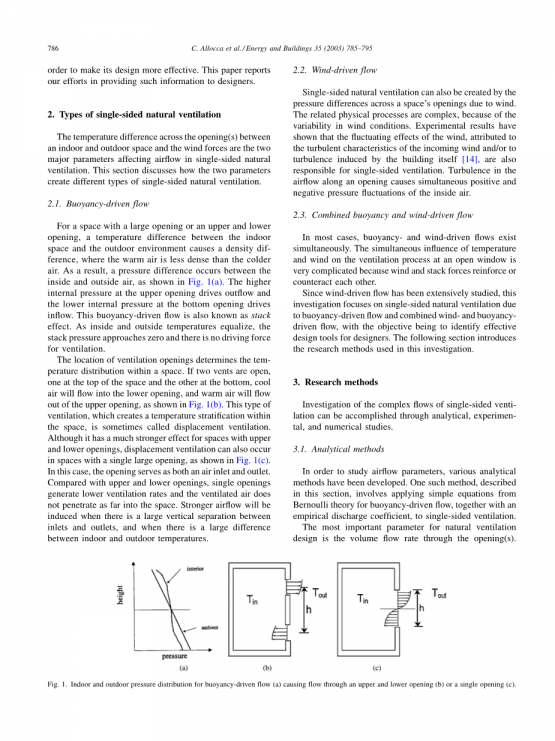 有两种主要类型的自然通风:交叉和单侧通风。在美国,大而厚的建筑体型,放火规范,安全要求和隐私问题经常阻碍交叉通风的设计。尽管单侧通风的效率低,但单侧通风比交叉通风更易被接受。我们关注的重点是单侧通风。
