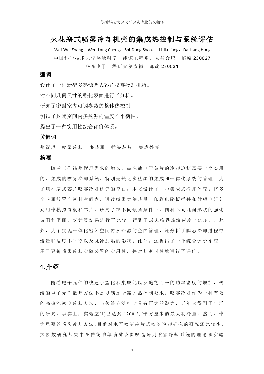 火花塞式喷雾冷却机壳的集成热控制与系统评估外文翻译资料
