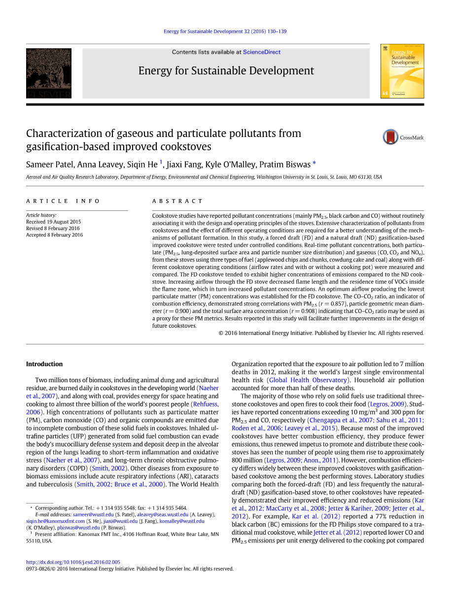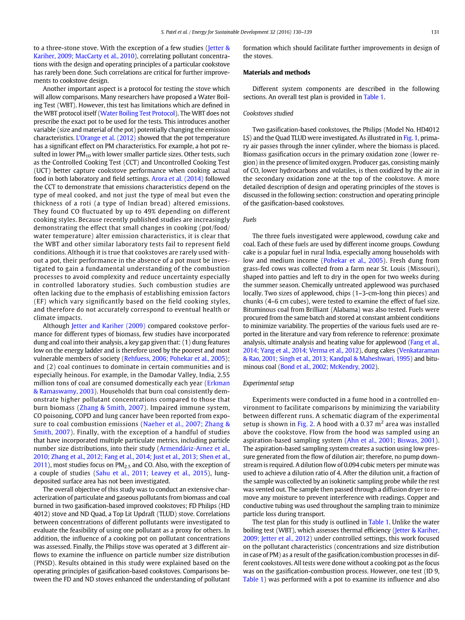 大多数依靠固体燃料的人使用传统的三层厨灶和开放式烹饪来烹饪食物(Legros,2009)。研究报道PM2.5和CO浓度分别超过10 mg / m3和300 ppm(Chengappa et al。,2007; Sahu et al。,2011; Roden et al。,2006; Leavey et al。,2015 )。由于大多数改进的炉灶具有更好的燃烧效率,因此产生的排放量更少,因此推广和销售这些炉灶的动力已经增加到约8亿人(Legros,2009; Anon。,2011) 。然而,燃烧效率在这些改进的炉灶与基于气化炉灶的炉灶之间差别很大。实验室研究将强制通风(FD)和不经常采用自然通风(ND)的基于气化的炉子与其他炉灶进行比较,反复证明了其改进的效率和减少的排放量(Kar等,2012; MacCarty等2008; Jetter&Kariher,2009; Jetter等,2012)。例如,Kar等人 (2012)报道FD飞利浦炉的黑碳(BC)排放量比传统的泥浆炉减少77%,而Jetter等人 (2012)报告说,与三石炉相比,输送到蒸煮锅的每单位能量的CO和PM2.5排放较低。 除少数研究外(Jetter&Kariher,2009; MacCarty等,2010),将污染物浓度与特定炉灶的设计和操作原理联系起来很少进行。 这种相关性对进一步改进炉灶设计至关重要。