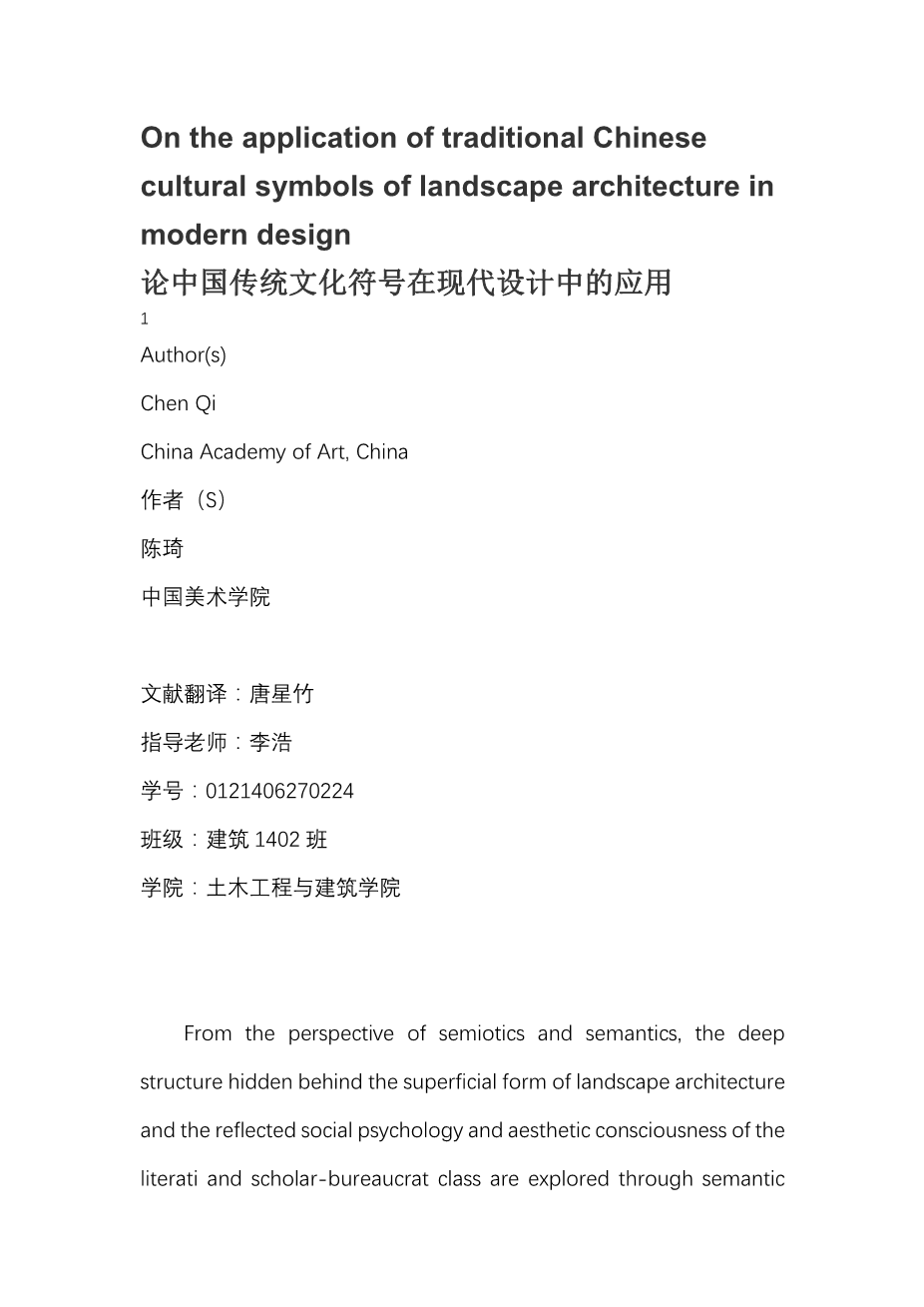 On the application of traditional Chinese cultural symbols of landscape architecture in modern design