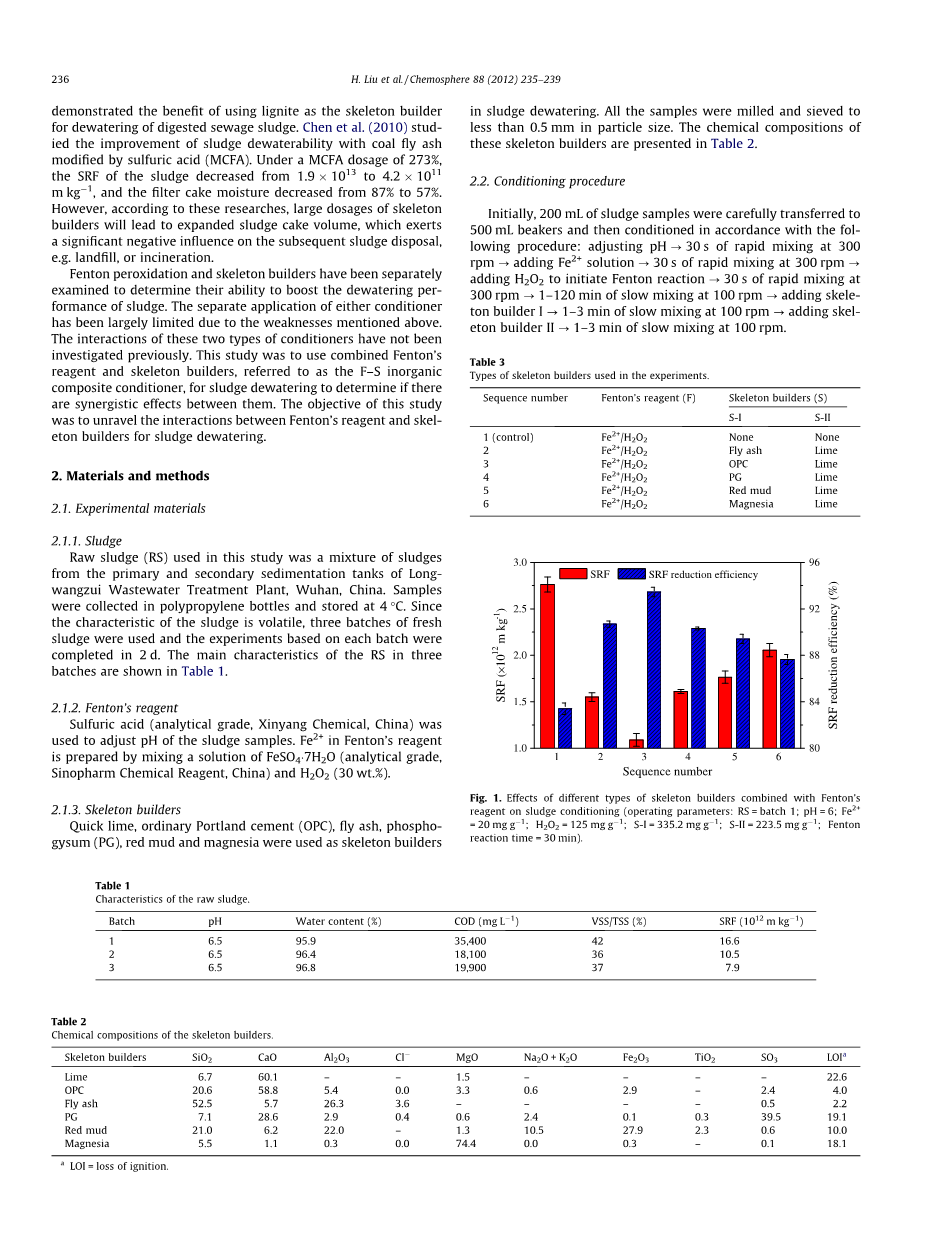 通过Fenton试剂和骨架助洗剂调节污水污泥