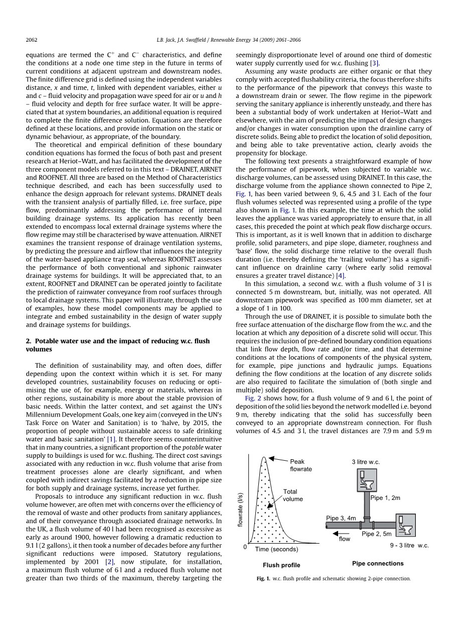 假设产生的是有机废物,或是符合公认的冲洗标准,因此将重点转移到管道系统的性能,包括下游的排水渠或污水管的接受能力。卫生服务设备管道的流态在本质上是不稳定的,并且在赫瑞瓦特大学和其他地方在开展其本质工作,目的是预测在携有离散固体的水流通过排水管线时,设计水量的变化对通过水量有无影响。预测到固体沉积的位置,并且能采取相应的预防措施,很明显地避免了堵塞的倾向。