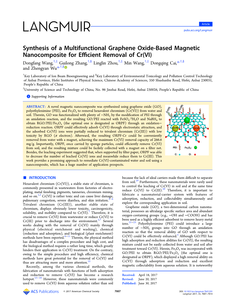 合成多功能石墨烯氧基磁性纳米复合材料对Cr(VI)的有效去除