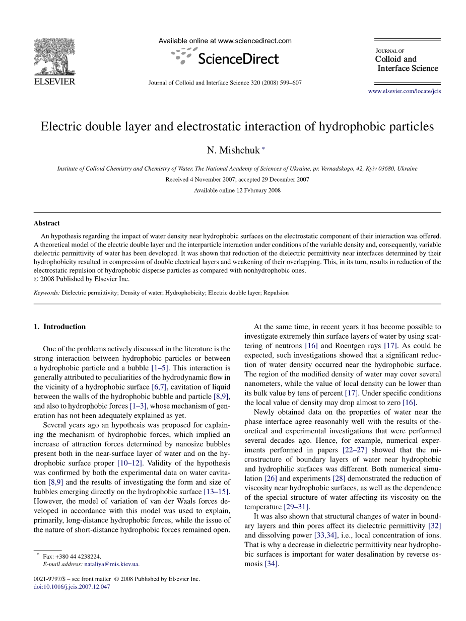 毫无疑问,降低水密度会影响界面和相邻液体的各种性质。首先,液体的粘度会大大降低。因此,人们可以得出这样的结论:停滞层的概念和一个滑动平面,在理论中起着重要作用在亲水表面附近有一个双电层[35]在疏水表面的情况下不重要。在同时,对于疏水表面的情况,理论上应该用一个模型替换一个停滞层的模型一个具有特殊属性的移动图层。预计的水和电解质的解离度,水合度离子及其扩散迁移率,水粘度,吸附,表面基团的解离以及其他特性在该区域中发生变化。