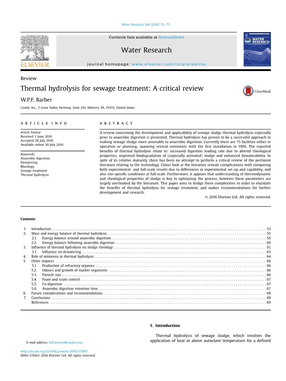 摘要:热水解已被证明是一种成功的方法,使污泥更易于厌氧消化。目前有75个设施正在运作或计划中,跨越几个大洲,第一次安装于1995年。据报道,热水解的好处涉及:由于流变特性的改变而增加消化负荷速率,改善活性污泥的生物降解和提高脱水能力。尽管该技术相对成熟,但并没有试图对与该技术相关的文献进行批判性的回顾。仔细观察文献就会发现,由于实验设置和能力的差异,以及实验部位的特定条件,比较实验结果和全面结果时存在复杂性。此外,污泥的热力学和流变特性的理解似乎是优化过程的关键,然而这些参数在很大程度上被文献所忽视。本文旨在将这些复杂性联系起来,以阐明热水解在污水处理中的好处,并为进一步的开发和研究提出建议。