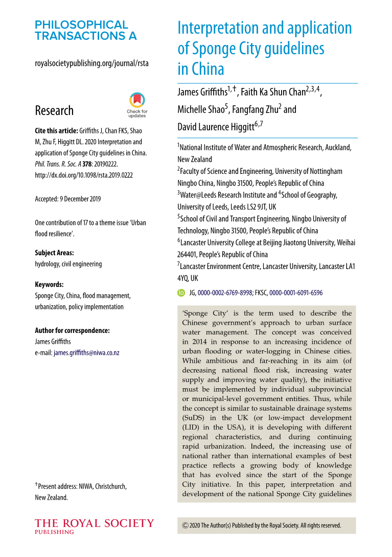 关键词:海绵城市,中国,洪水管理,城市化,政策执行