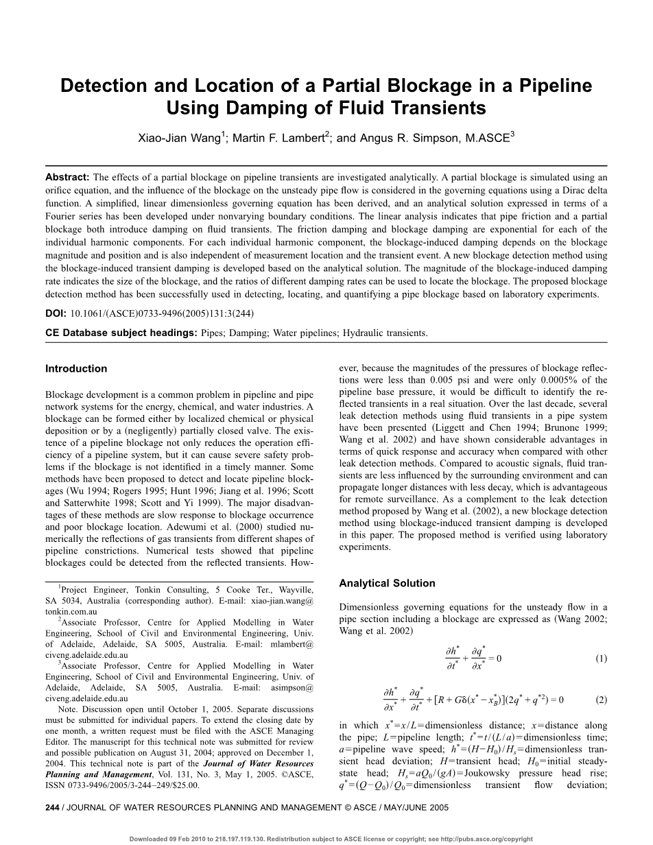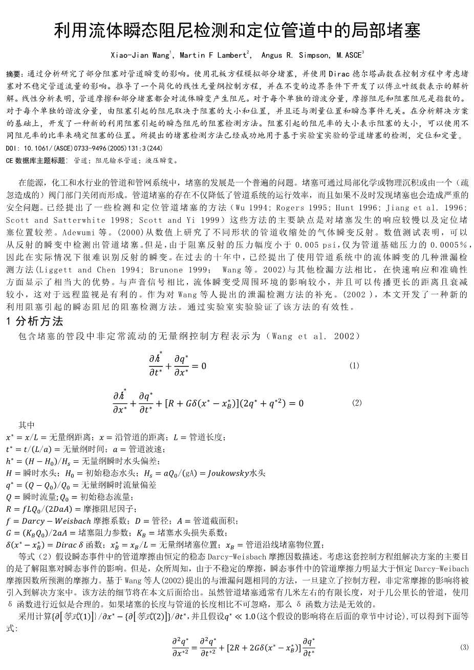 利用流体瞬态阻尼检测和定位管道中的局部堵塞外文翻译资料 2022-08-14 14:18:15 英语原文共 6 页,剩余内容已隐藏,支付完成后下载完整资料 英语译文共 7 页,剩余内容已隐藏,支付完成后下载完整资料 资料编号:[235682],资料为PDF文档或Word文档,PDF文档可免费转换为Word 原文和译文剩余内容已隐藏,您需要先支付 30元 才能查看原文和译文全部内容!立即支付 发小红书推广免费获取该资料资格。点击链接进入获取推广文案即可: Ai一键组稿 | 降AI率 | 降重复率 | 论文一键排版 PREVIOUS NEXT 您可能感兴趣的文章 基于AMESim的不同充装条件下灭火器气体灭火剂释放特性模拟外文翻译资料 地下采空区灭火用抑制泡沫的流动特性研究外文翻译资料 定期检查的消防泵系统的可用性外文翻译资料 消防供水一体化研究外文翻译资料 一种新型的用于灭火的水性泡沫的制备及耐高温性能的研究外文翻译资料 在中国太湖中磷组分及pH对不同营养区沉积物磷释放的影响外文翻译资料 纳米材料融合改造新鲜冻干污水的活性污泥:测试影响了环境协定结果外文翻译资料 我国水利水电工程环境保护研究与实践中的主要问题外文翻译资料 户外生活用水影响因素关系的研究综述及理论模型外文翻译资料 雨水收集:孟加拉国干旱多发地区的水资源综合管理的实践潜力外文翻译资料