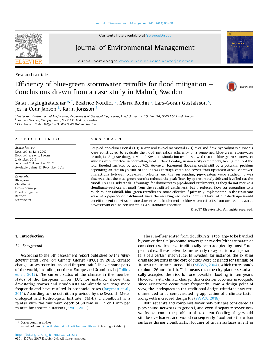 根据政府间气候变化专门委员会(IPCC)在2013年发布的第5次评估报告,在世界上的一些地区(包括北欧和斯堪的纳维亚),气候变化造成了更为强烈和频繁的降雨(Collins等人,2013)。欧盟成员国的气候的现状是破坏性的暴风雨和大暴雨频繁发生,并由此而造成经济损失(Jongman等人,2014)。根据瑞典气象水文研究所(SMHI)提供的定义:大暴雨是指最小降雨量为50毫米每小时,或短期降雨量达到1毫米每分钟(SMHI,2011)。