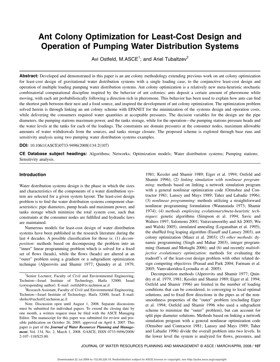 本文介绍了一种基于蚁群算法的配水系统联合最小成本设计和运行的发展和应用,将蚁群优化的应用扩展到多个延长周期的负荷条件,并将其扩展到抽水站和高位蓄水的配水系统。