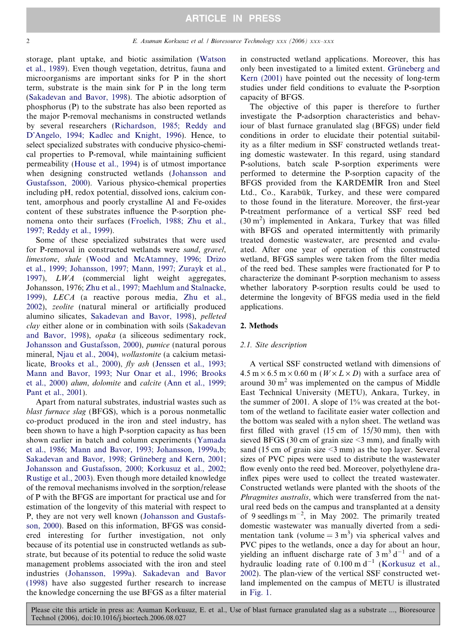 从2002年5月开始至2003年7月运行结束的中东技术大学的垂直地下流人工湿地中,随机取出几个基质样本。在中东技术大学环境工程系的化学实验室进行了磷萃取实验。