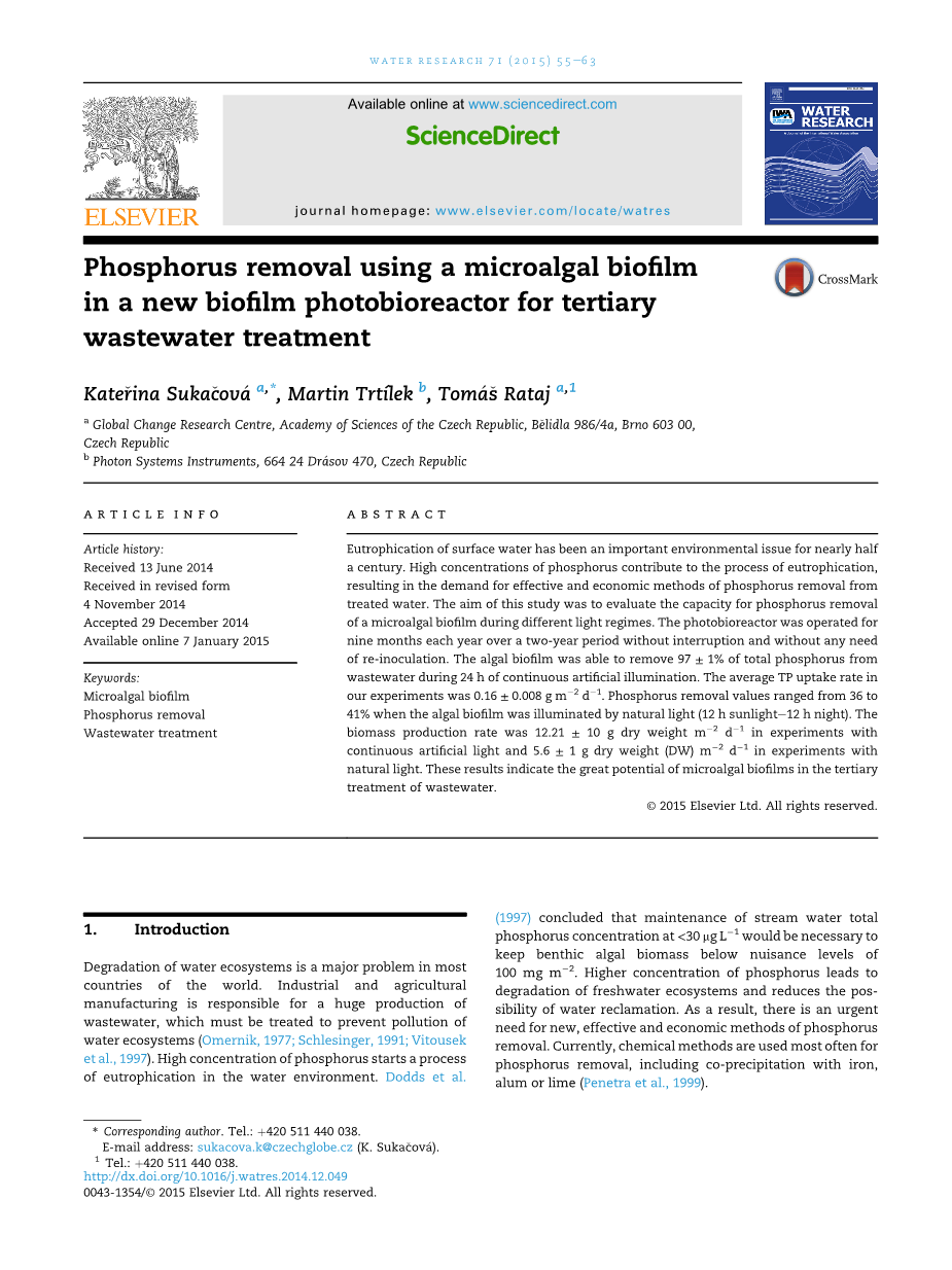 在光生物膜反应器内利用微藻膜作为三级处理对污水进行除磷处理外文翻译资料