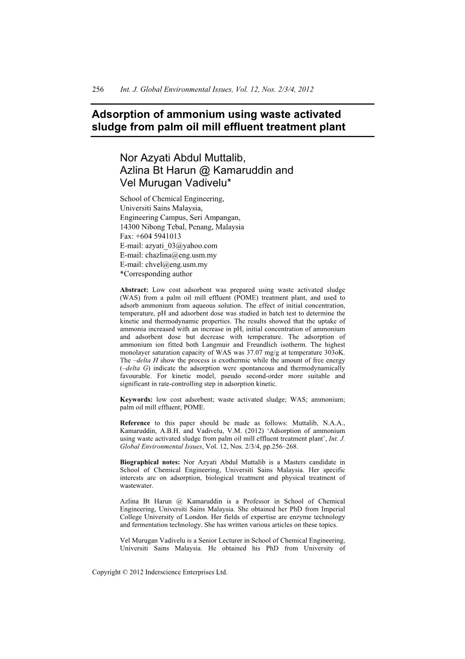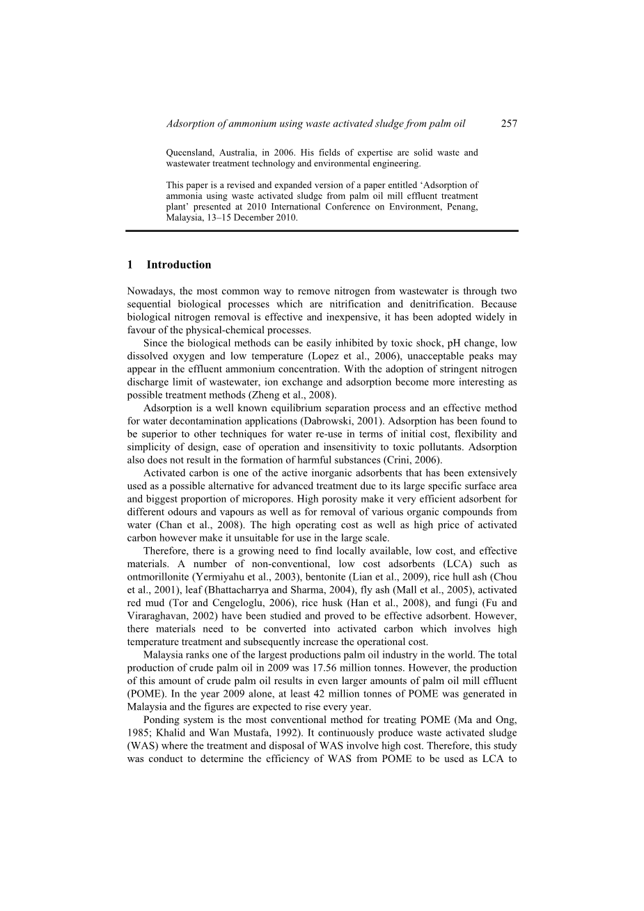 水处理系统是处理棕榈油废水最传统的方法,它不断产生活性污泥。活性污泥的处理费用较高,因此,本研究尝试确定从棕榈油废水中产生的活性污泥作为低成本吸附剂吸附水溶液中的氨。与之前研究不同,本实验主要集中于将活性污泥转换成有效的吸附剂,不涉及热量处理,从而减少运行成本。