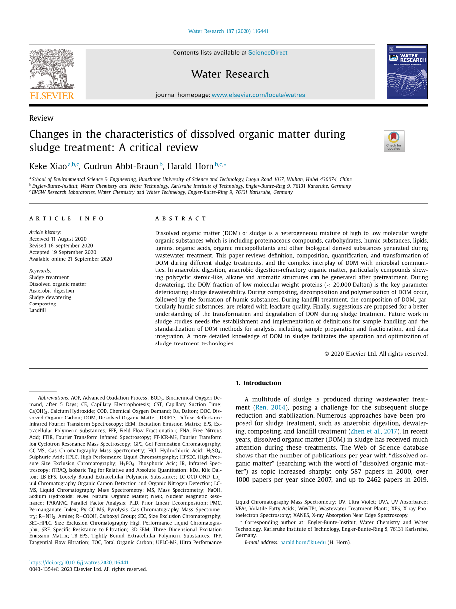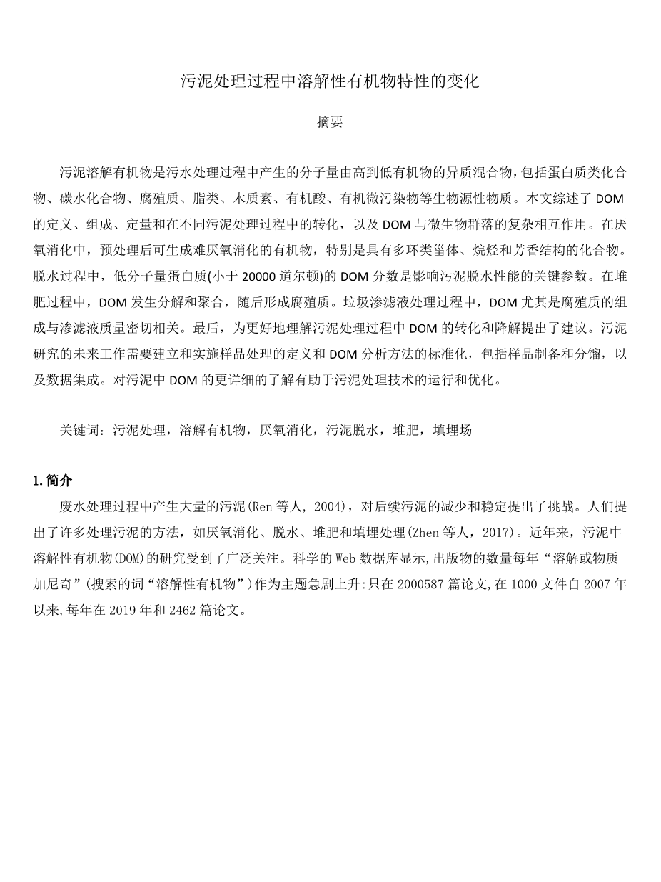 污泥处理过程中溶解性有机物特性的变化外文翻译资料