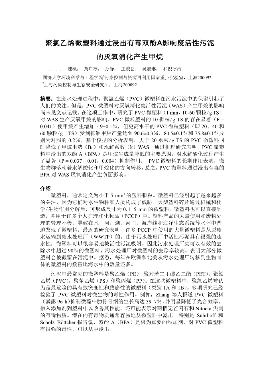 聚氯乙烯微塑料通过浸出有毒双酚A影响废活性污泥 的厌氧消化产生甲烷外文翻译资料 2023-02-16 10:00:41 英语原文共 9 页,剩余内容已隐藏,支付完成后下载完整资料 英语译文共 12 页,剩余内容已隐藏,支付完成后下载完整资料 资料编号:[258104],资料为PDF文档或Word文档,PDF文档可免费转换为Word 原文和译文剩余内容已隐藏,您需要先支付 30元 才能查看原文和译文全部内容!立即支付 发小红书推广免费获取该资料资格。点击链接进入获取推广文案即可: Ai一键组稿 | 降AI率 | 降重复率 | 论文一键排版 PREVIOUS NEXT 您可能感兴趣的文章 基于AMESim的不同充装条件下灭火器气体灭火剂释放特性模拟外文翻译资料 地下采空区灭火用抑制泡沫的流动特性研究外文翻译资料 定期检查的消防泵系统的可用性外文翻译资料 消防供水一体化研究外文翻译资料 一种新型的用于灭火的水性泡沫的制备及耐高温性能的研究外文翻译资料 在中国太湖中磷组分及pH对不同营养区沉积物磷释放的影响外文翻译资料 纳米材料融合改造新鲜冻干污水的活性污泥:测试影响了环境协定结果外文翻译资料 我国水利水电工程环境保护研究与实践中的主要问题外文翻译资料 户外生活用水影响因素关系的研究综述及理论模型外文翻译资料 雨水收集:孟加拉国干旱多发地区的水资源综合管理的实践潜力外文翻译资料