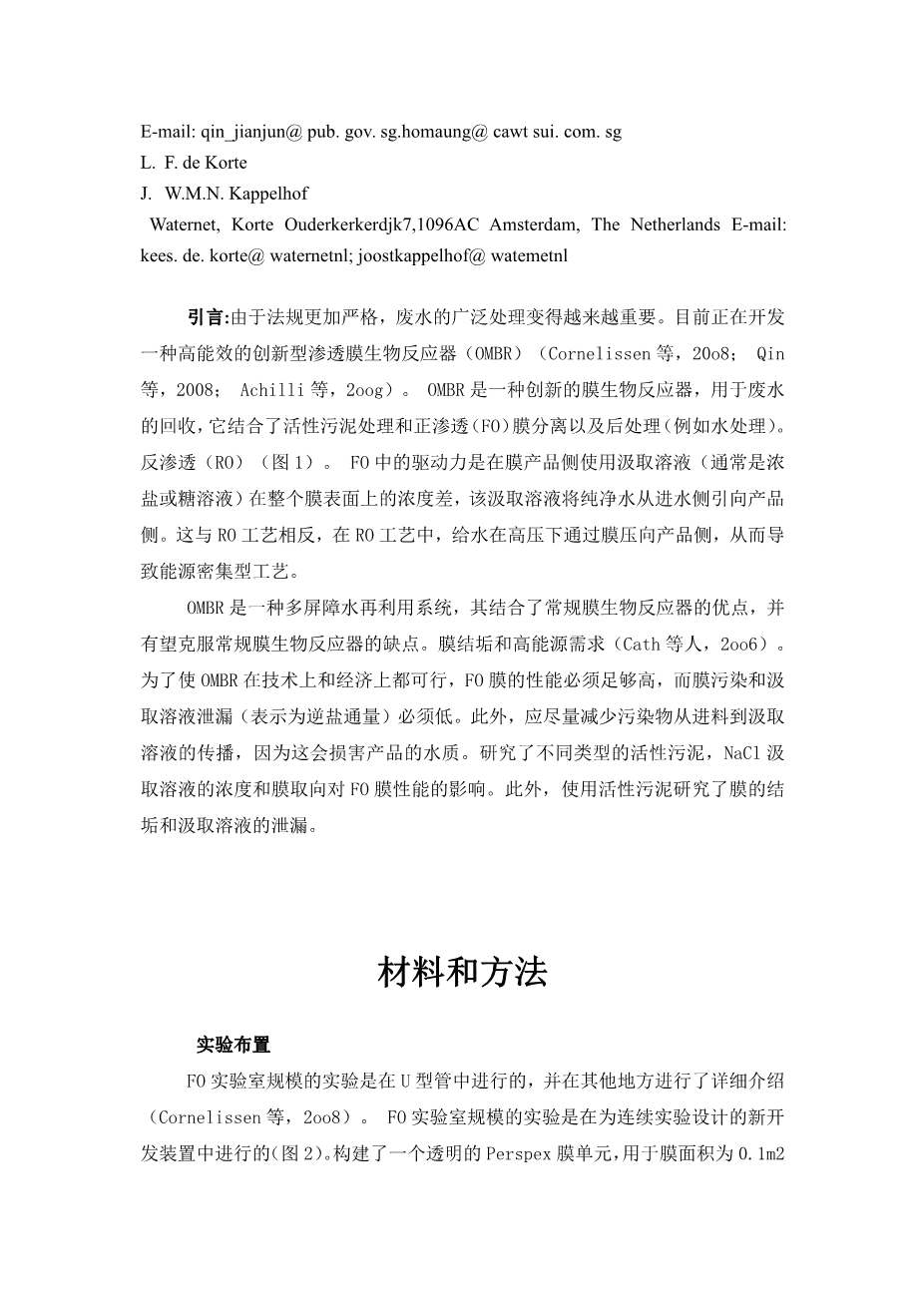 创新的渗透膜生物反应器(OMBR)用于废水的再利用外文翻译资料 2023-02-27 10:10:18 英语原文共 9 页,剩余内容已隐藏,支付完成后下载完整资料 英语译文共 29 页,剩余内容已隐藏,支付完成后下载完整资料 资料编号:[405797],资料为PDF文档或Word文档,PDF文档可免费转换为Word 原文和译文剩余内容已隐藏,您需要先支付 30元 才能查看原文和译文全部内容!立即支付 发小红书推广免费获取该资料资格。点击链接进入获取推广文案即可: Ai一键组稿 | 降AI率 | 降重复率 | 论文一键排版 PREVIOUS NEXT 您可能感兴趣的文章 基于AMESim的不同充装条件下灭火器气体灭火剂释放特性模拟外文翻译资料 地下采空区灭火用抑制泡沫的流动特性研究外文翻译资料 定期检查的消防泵系统的可用性外文翻译资料 消防供水一体化研究外文翻译资料 一种新型的用于灭火的水性泡沫的制备及耐高温性能的研究外文翻译资料 在中国太湖中磷组分及pH对不同营养区沉积物磷释放的影响外文翻译资料 纳米材料融合改造新鲜冻干污水的活性污泥:测试影响了环境协定结果外文翻译资料 我国水利水电工程环境保护研究与实践中的主要问题外文翻译资料 户外生活用水影响因素关系的研究综述及理论模型外文翻译资料 雨水收集:孟加拉国干旱多发地区的水资源综合管理的实践潜力外文翻译资料