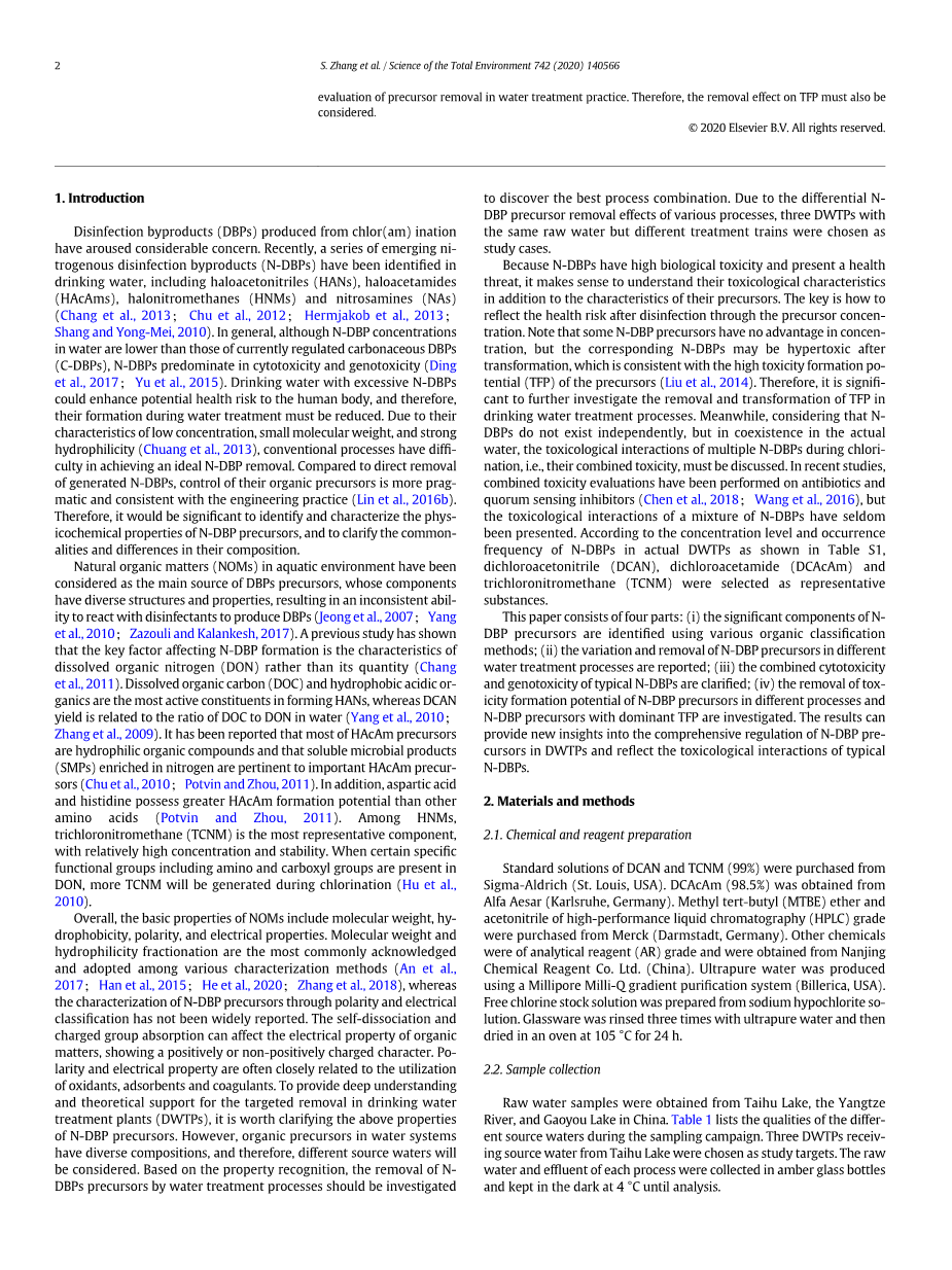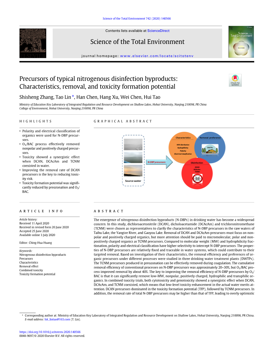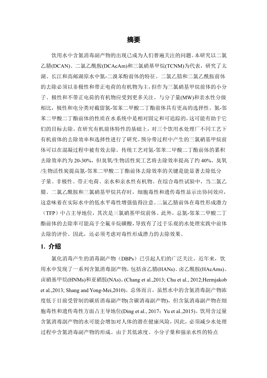 典型含氨消毒副产物的前体:特性、去除和毒性形成潜力外文翻译资料
