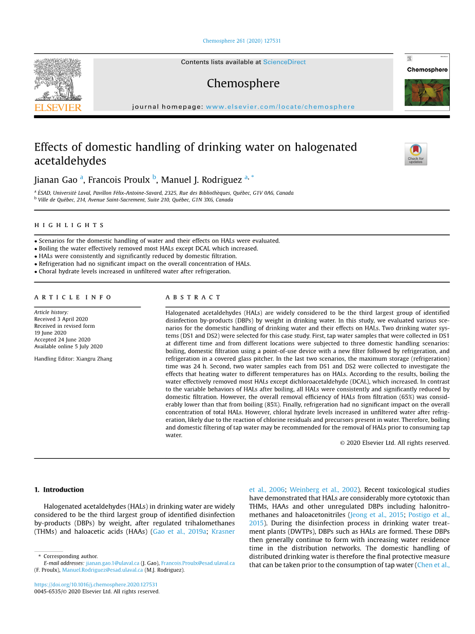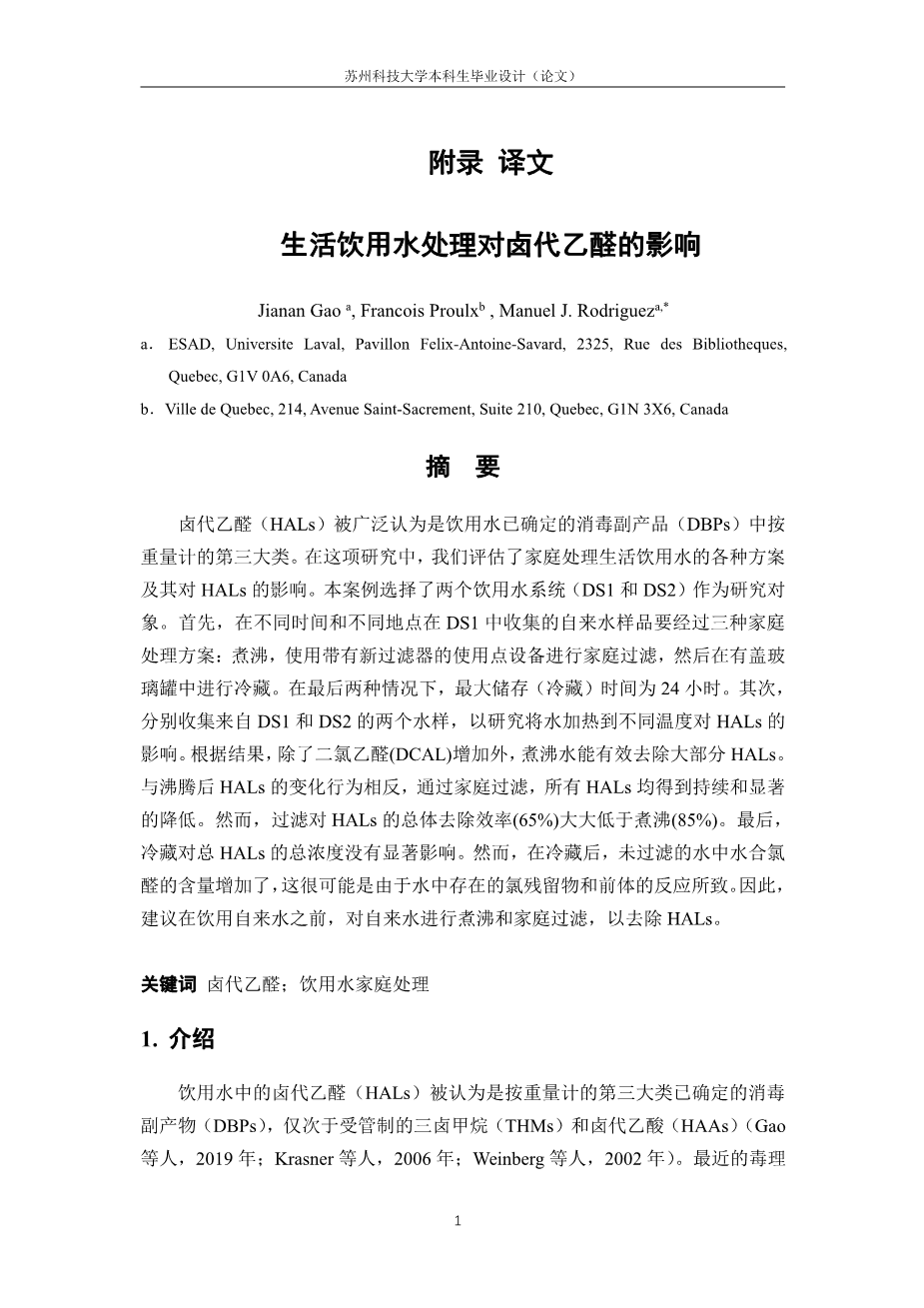 生活饮用水处理对卤代乙醛的影响外文翻译资料
