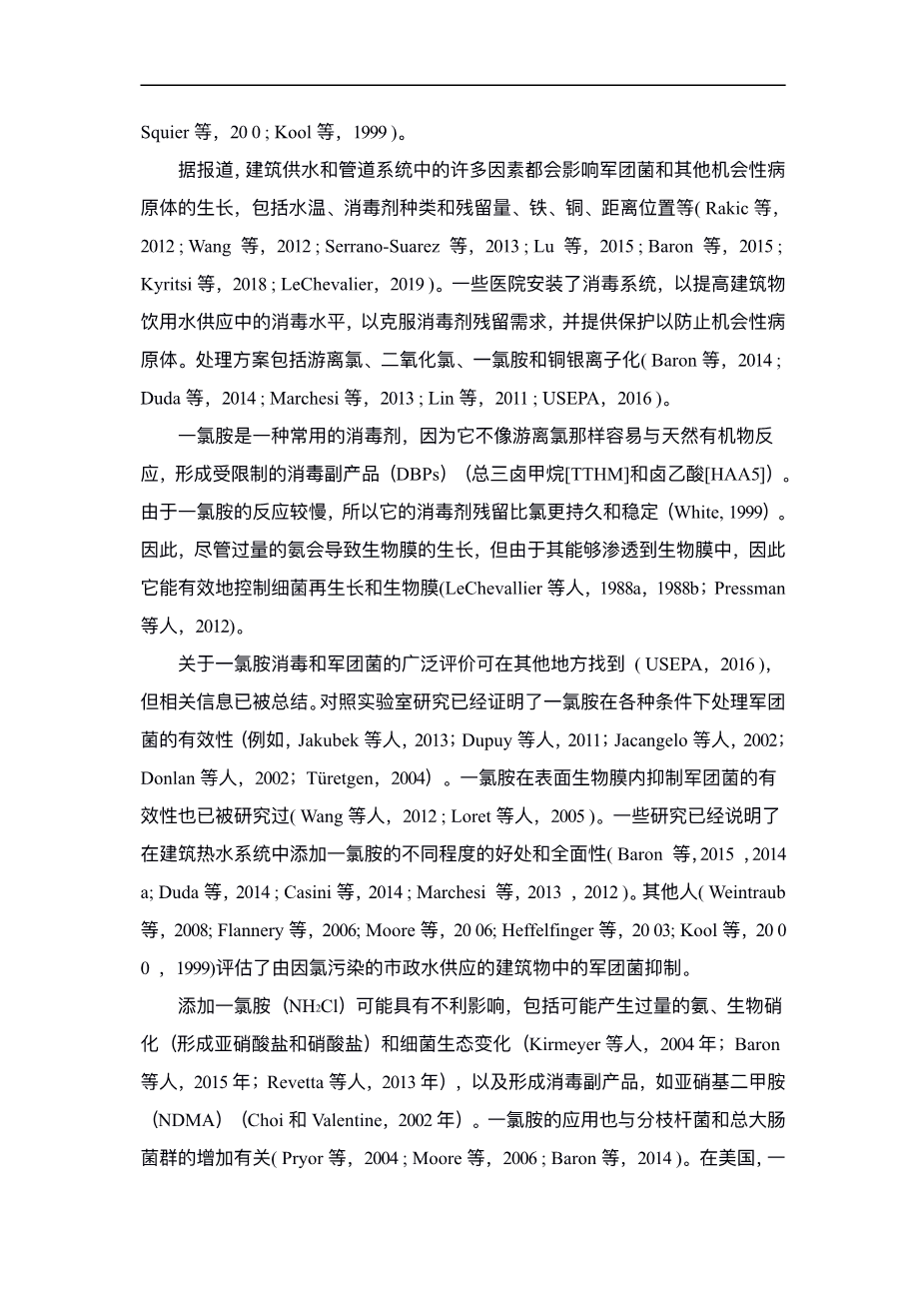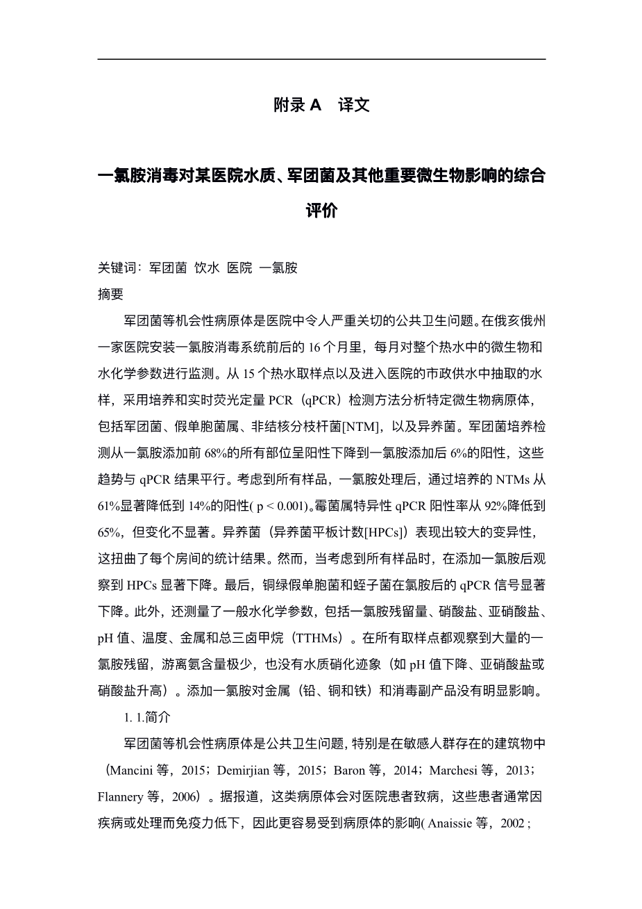 一氯胺消毒对某医院水质、军团菌及其他重要微生物影响的综合评价外文翻译资料 2023-03-03 22:44:08 英语原文共 17 页,剩余内容已隐藏,支付完成后下载完整资料 英语译文共 25 页,剩余内容已隐藏,支付完成后下载完整资料 资料编号:[405339],资料为PDF文档或Word文档,PDF文档可免费转换为Word 原文和译文剩余内容已隐藏,您需要先支付 30元 才能查看原文和译文全部内容!立即支付 发小红书推广免费获取该资料资格。点击链接进入获取推广文案即可: Ai一键组稿 | 降AI率 | 降重复率 | 论文一键排版 PREVIOUS NEXT 您可能感兴趣的文章 基于AMESim的不同充装条件下灭火器气体灭火剂释放特性模拟外文翻译资料 地下采空区灭火用抑制泡沫的流动特性研究外文翻译资料 定期检查的消防泵系统的可用性外文翻译资料 消防供水一体化研究外文翻译资料 一种新型的用于灭火的水性泡沫的制备及耐高温性能的研究外文翻译资料 在中国太湖中磷组分及pH对不同营养区沉积物磷释放的影响外文翻译资料 纳米材料融合改造新鲜冻干污水的活性污泥:测试影响了环境协定结果外文翻译资料 我国水利水电工程环境保护研究与实践中的主要问题外文翻译资料 户外生活用水影响因素关系的研究综述及理论模型外文翻译资料 雨水收集:孟加拉国干旱多发地区的水资源综合管理的实践潜力外文翻译资料