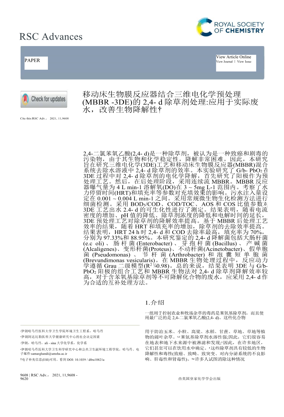 移动床生物膜反应器结合三维电化学预处理(MBBR-3DE)处理2,4- d除草剂:在实际废水中的应用,提高生物可降解性外文翻译资料 2023-07-26 10:11:33 英语原文共 13 页,剩余内容已隐藏,支付完成后下载完整资料 英语译文共 13 页,剩余内容已隐藏,支付完成后下载完整资料 资料编号:[605059],资料为PDF文档或Word文档,PDF文档可免费转换为Word 原文和译文剩余内容已隐藏,您需要先支付 30元 才能查看原文和译文全部内容!立即支付 发小红书推广免费获取该资料资格。点击链接进入获取推广文案即可: Ai一键组稿 | 降AI率 | 降重复率 | 论文一键排版 PREVIOUS NEXT 您可能感兴趣的文章 基于AMESim的不同充装条件下灭火器气体灭火剂释放特性模拟外文翻译资料 地下采空区灭火用抑制泡沫的流动特性研究外文翻译资料 定期检查的消防泵系统的可用性外文翻译资料 消防供水一体化研究外文翻译资料 一种新型的用于灭火的水性泡沫的制备及耐高温性能的研究外文翻译资料 在中国太湖中磷组分及pH对不同营养区沉积物磷释放的影响外文翻译资料 纳米材料融合改造新鲜冻干污水的活性污泥:测试影响了环境协定结果外文翻译资料 我国水利水电工程环境保护研究与实践中的主要问题外文翻译资料 户外生活用水影响因素关系的研究综述及理论模型外文翻译资料 雨水收集:孟加拉国干旱多发地区的水资源综合管理的实践潜力外文翻译资料