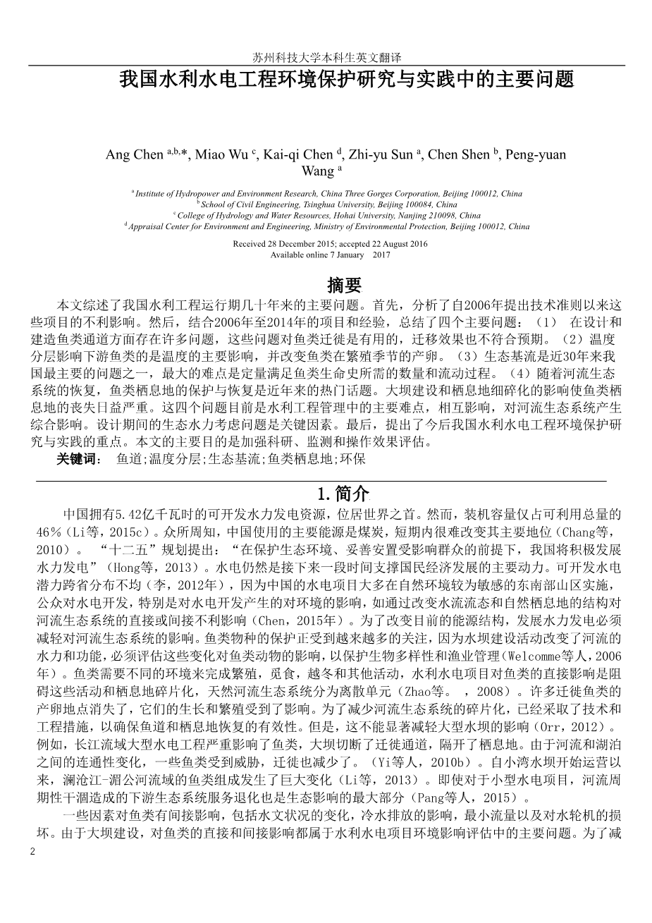 我国水利水电工程环境保护研究与实践中的主要问题外文翻译资料