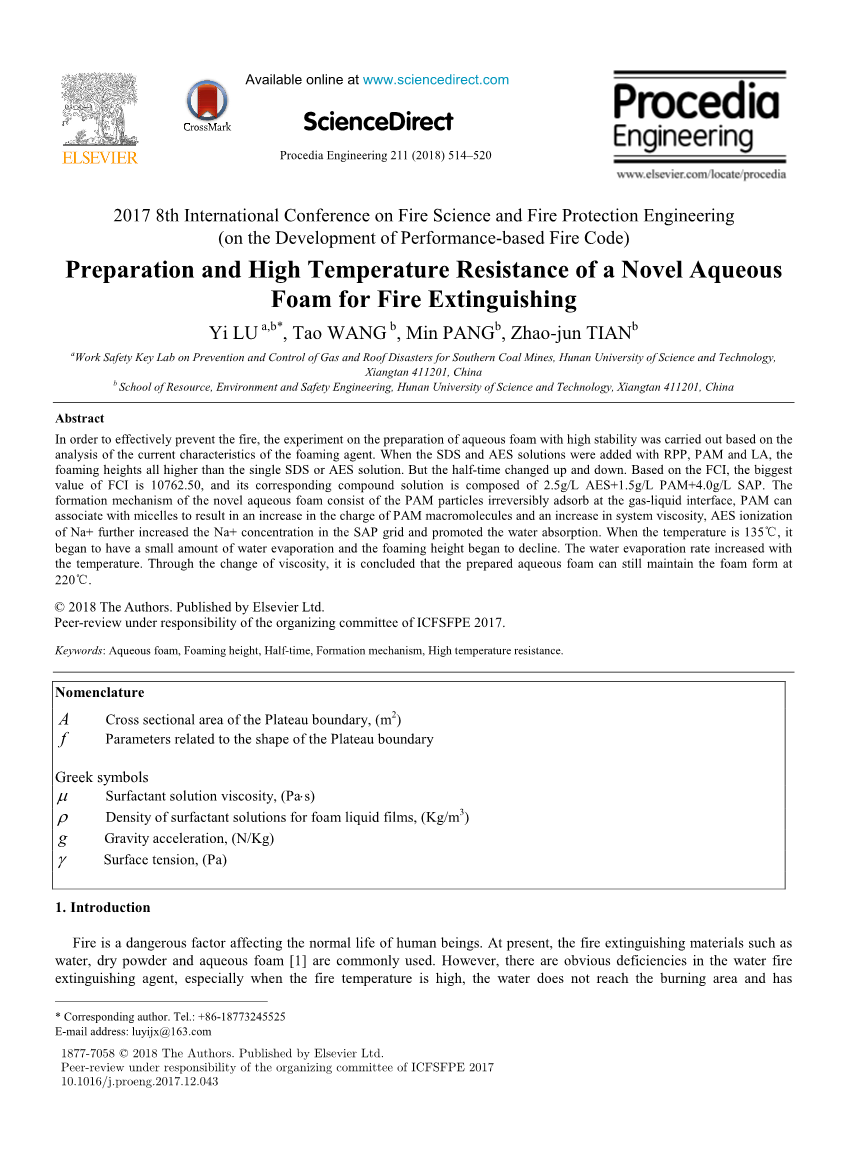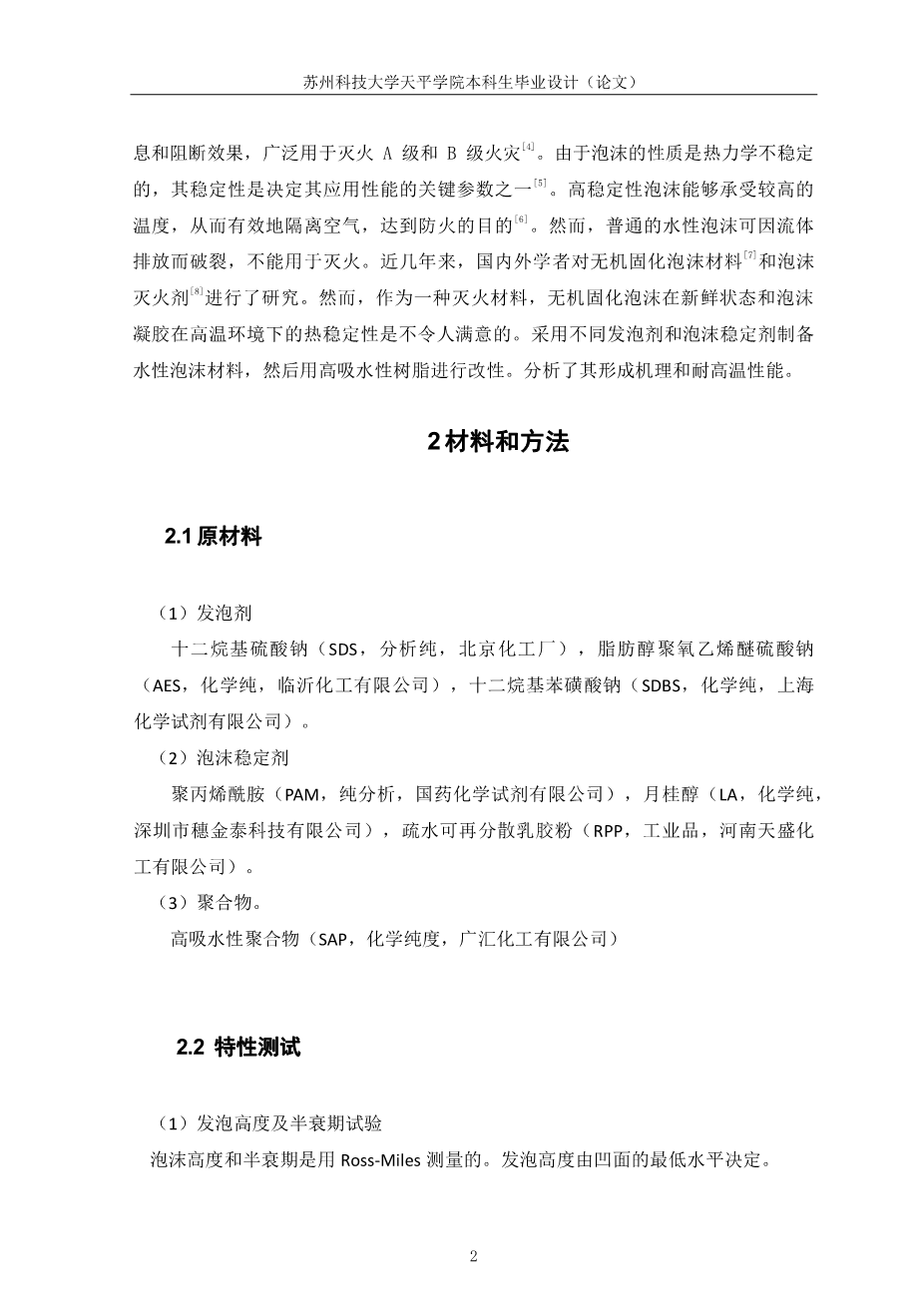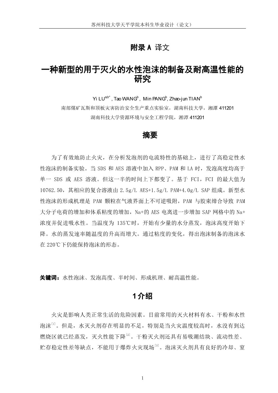 一种新型的用于灭火的水性泡沫的制备及耐高温性能的研究外文翻译资料