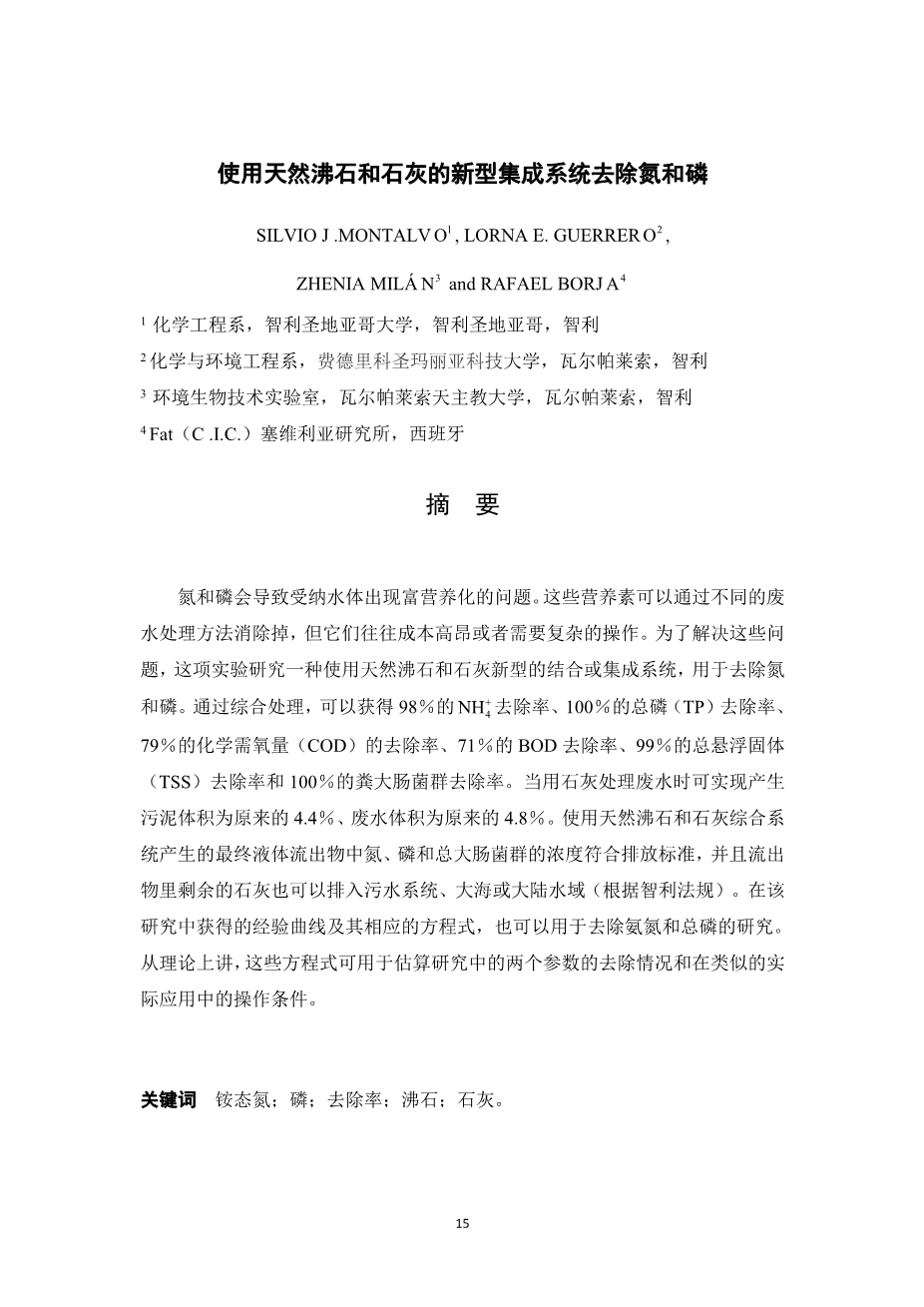 华东D市某区排水工程规划设计和污水处理厂工艺设计外文翻译资料 2022-02-27 21:50:36 英语原文共 7 页,剩余内容已隐藏,支付完成后下载完整资料 英语译文共 17 页,剩余内容已隐藏,支付完成后下载完整资料资料编号:[434769],资料为PDF文档或Word文档,PDF文档可免费转换为Word 原文和译文剩余内容已隐藏,您需要先支付 30元 才能查看原文和译文全部内容!立即支付 发小红书推广免费获取该资料资格。点击链接进入获取推广文案即可: Ai一键组稿 | 降AI率 | 降重复率 | 论文一键排版 PREVIOUS NEXT 您可能感兴趣的文章 基于AMESim的不同充装条件下灭火器气体灭火剂释放特性模拟外文翻译资料 地下采空区灭火用抑制泡沫的流动特性研究外文翻译资料 定期检查的消防泵系统的可用性外文翻译资料 消防供水一体化研究外文翻译资料 一种新型的用于灭火的水性泡沫的制备及耐高温性能的研究外文翻译资料 在中国太湖中磷组分及pH对不同营养区沉积物磷释放的影响外文翻译资料 纳米材料融合改造新鲜冻干污水的活性污泥:测试影响了环境协定结果外文翻译资料 我国水利水电工程环境保护研究与实践中的主要问题外文翻译资料 户外生活用水影响因素关系的研究综述及理论模型外文翻译资料 雨水收集:孟加拉国干旱多发地区的水资源综合管理的实践潜力外文翻译资料