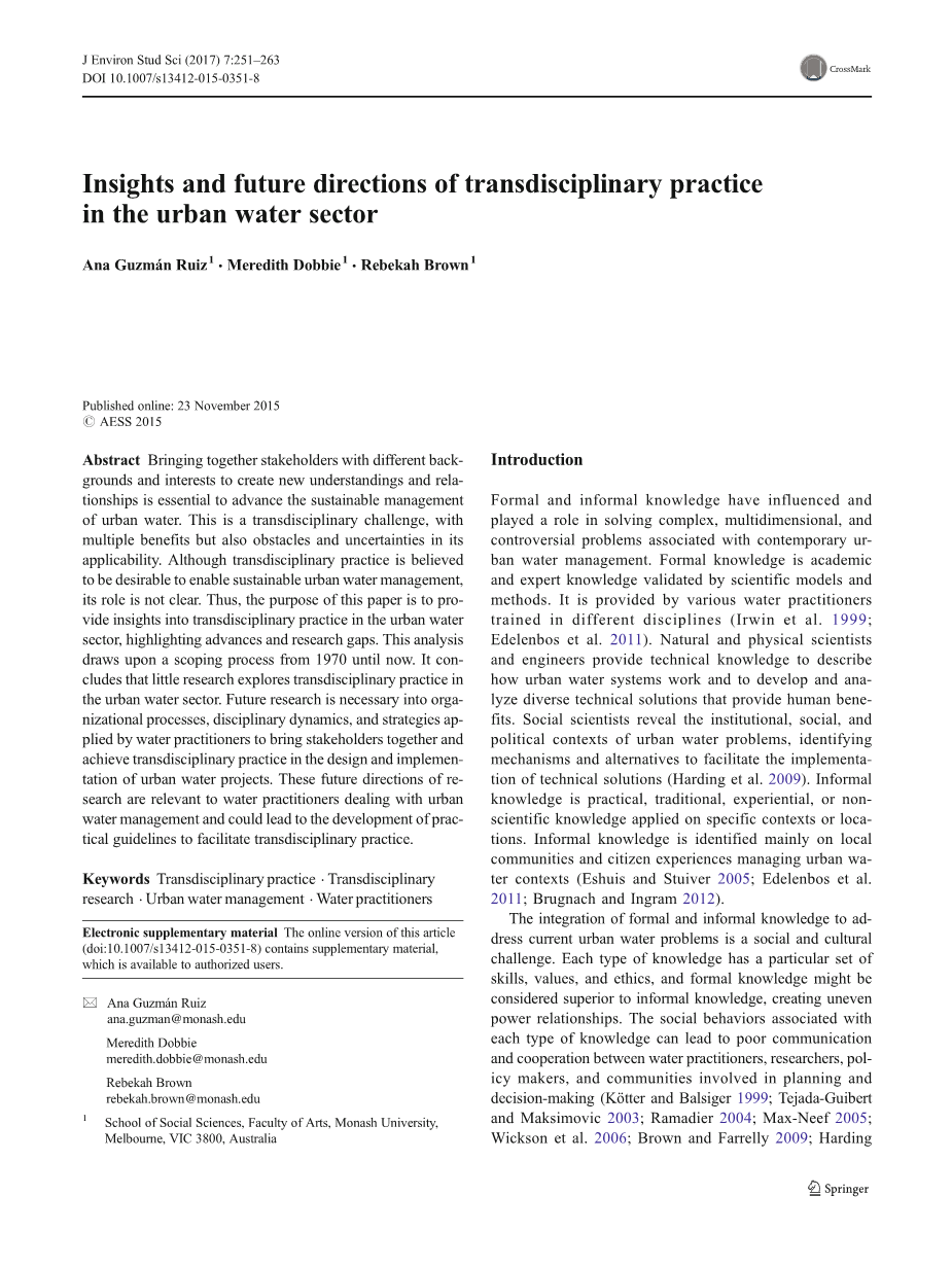 关键词:跨学科实践;跨学科研究 ;城市水管理;水从业者