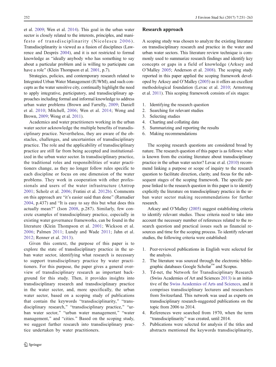 范围界定研究问题被认为是广泛的性质。本文的研究问题如下: 从现有文献中了解到城市水务行业的跨学科实践levac等人在2010年将调查的目的或范围与研究问题联系起来, 以便利范围界定框架的后续阶段的方向、清晰度和重点。与本文研究问题有关的具体目的是明确确定关于禁止水部门跨学科实践的文献, 提出进一步研究的建议。