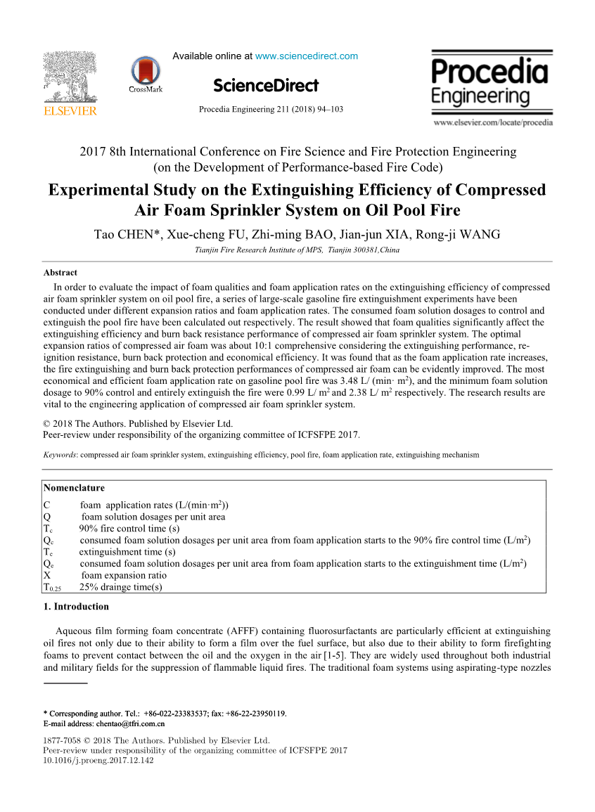 研究使用不同泡沫质量和泡沫用量的压缩空气泡沫系统的灭火效率,是必要的。并能确定最佳的工程应用参数。