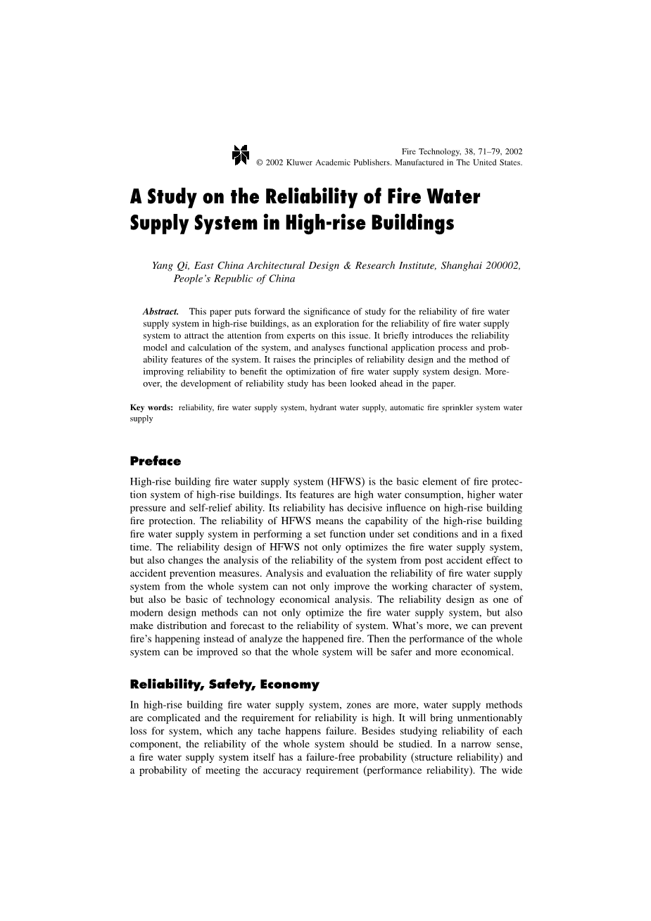 致远楼建筑给排水工程设计外文翻译资料 2022-02-27 22:27:11 英语原文共 9 页,剩余内容已隐藏,支付完成后下载完整资料 英语译文共 8 页,剩余内容已隐藏,支付完成后下载完整资料资料编号:[432363],资料为PDF文档或Word文档,PDF文档可免费转换为Word 原文和译文剩余内容已隐藏,您需要先支付 30元 才能查看原文和译文全部内容!立即支付 发小红书推广免费获取该资料资格。点击链接进入获取推广文案即可: Ai一键组稿 | 降AI率 | 降重复率 | 论文一键排版 PREVIOUS NEXT 您可能感兴趣的文章 基于AMESim的不同充装条件下灭火器气体灭火剂释放特性模拟外文翻译资料 地下采空区灭火用抑制泡沫的流动特性研究外文翻译资料 定期检查的消防泵系统的可用性外文翻译资料 消防供水一体化研究外文翻译资料 一种新型的用于灭火的水性泡沫的制备及耐高温性能的研究外文翻译资料 在中国太湖中磷组分及pH对不同营养区沉积物磷释放的影响外文翻译资料 纳米材料融合改造新鲜冻干污水的活性污泥:测试影响了环境协定结果外文翻译资料 我国水利水电工程环境保护研究与实践中的主要问题外文翻译资料 户外生活用水影响因素关系的研究综述及理论模型外文翻译资料 雨水收集:孟加拉国干旱多发地区的水资源综合管理的实践潜力外文翻译资料